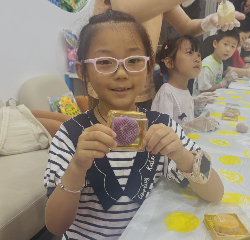 一个小时后,每组家庭都完成了4个冰皮月饼,装进社区准备的精美包装盒里。孩子们捧着自己做的月饼,有的迫不及待要给邻居小伙伴看,有的认真对妈妈说:“今晚赏月时吃,要和家人一起分。”