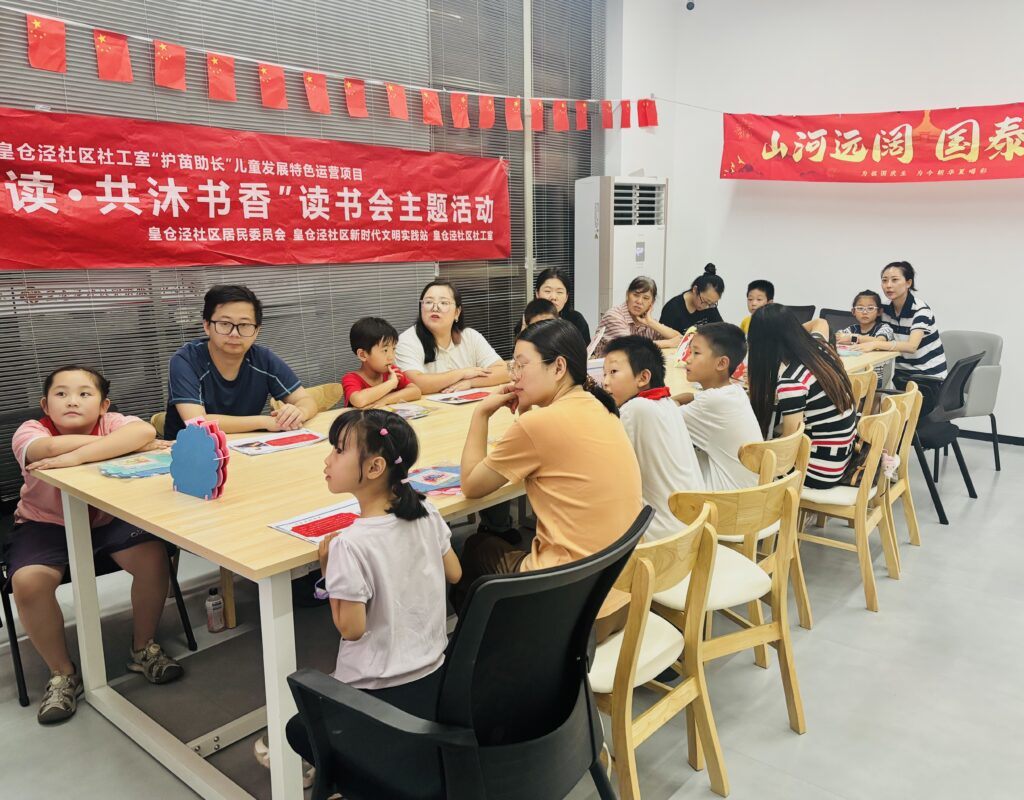 当9·3阅兵的铿锵步伐仍在社区回荡,当国庆的喜庆氛围即将弥漫在邻里巷间,让我们一起在社区打开红色诗词盲盒,在字里行间感受永不褪色的家国情怀,在邻里共读中厚植社区情谊!为深进一步传承红色经典,弘扬爱国主义精神,激发学生阅读兴趣,皇仓泾社区于9月30日晚上开展了“童心庆国庆 共祝华诞生”国庆主题读书会活动。