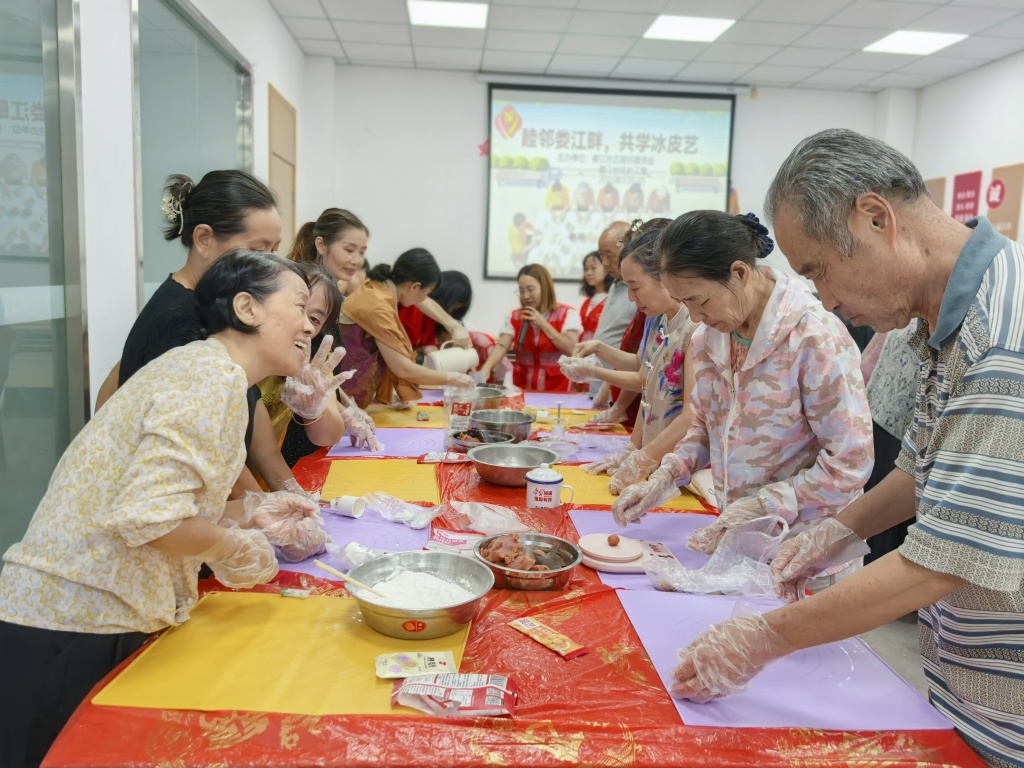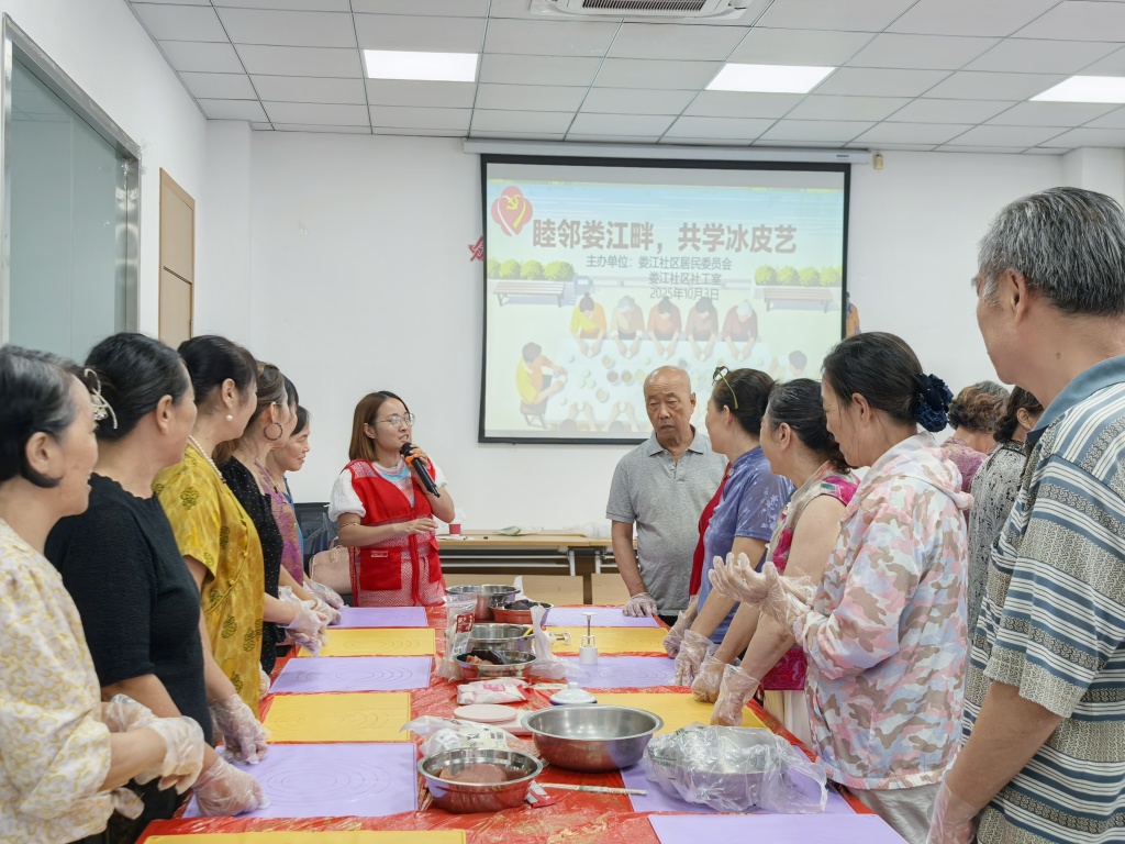 中秋佳节将至,团圆氛围渐浓。为丰富社区老年人的精神文化生活,昆山高新区娄江社区携手昆山益佳善志愿服务中心,于2025年10月3日在社区二楼活动室举办‘睦邻娄江畔,共学冰皮艺’主题活动。20位社区老人与5名志愿者齐聚一堂,通过亲手制作冰皮月饼,提前感受传统节日的温馨与欢乐。