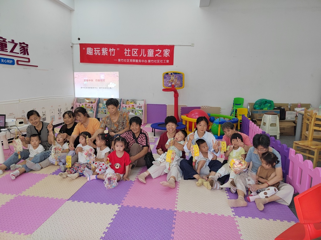 为传承中华优秀传统文化,丰富社区居民精神文化生活,2025年9月25日,紫竹社区儿童之家成功举办‘童趣中秋 巧制花灯’亲子灯笼DIY活动。活动吸引了20组0-3岁幼儿家庭参与,通过趣味互动与手工制作,让孩子们在欢乐中感受中秋节日氛围,同时增进了亲子关系与社区凝聚力。