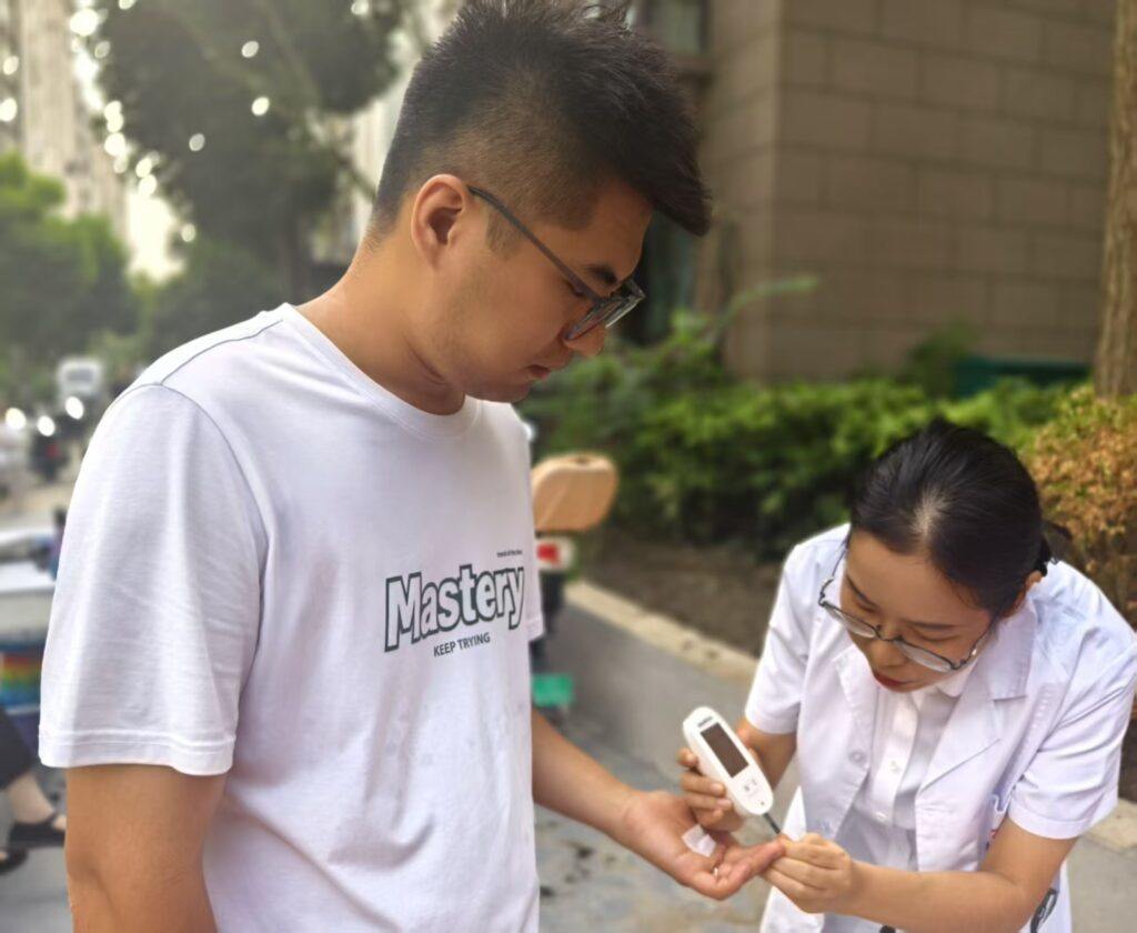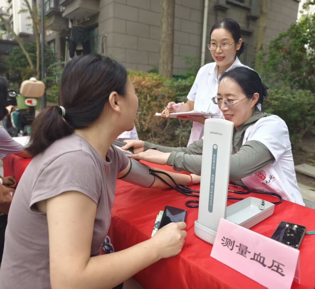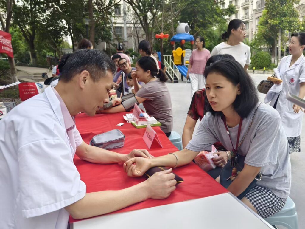 活动现场设置了健康服务、生活服务两大区域,各项服务摊位前有序排起队伍。在健康服务区域,医护人员耐心为居民测量血压、检测血糖,细致解读数值含义,针对高血压、高血糖等常见问题给出饮食、运动等专业建议;中医医师通过把脉问诊,结合居民体质提供调理指导;口腔与眼科检查摊位前,医生为居民检查口腔健康、视力状况,普及日常护牙、护眼知识。