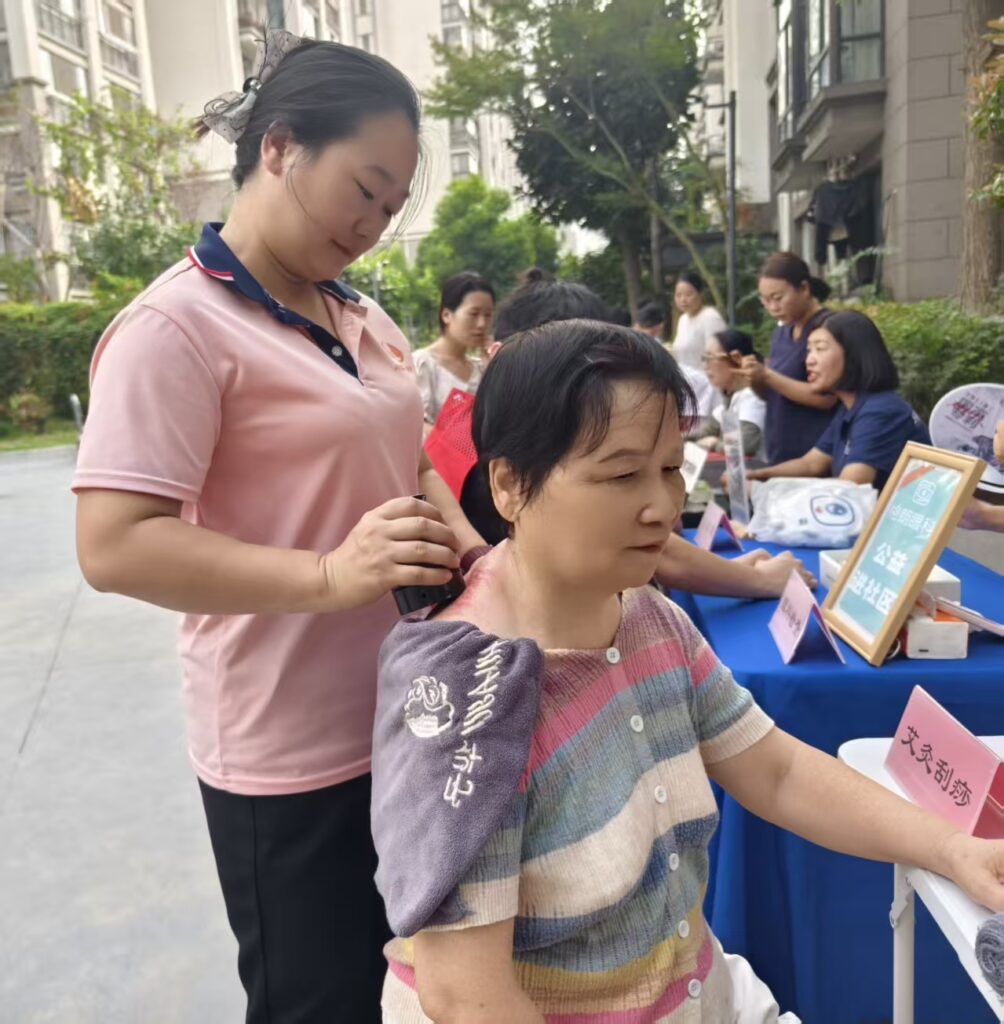 生活服务区域同样人气十足。理发师傅免费为居民修剪头发,娴熟的手艺赢得阵阵称赞;磨剪刀服务摊位前,居民们纷纷拿来家中钝旧的剪刀、刀具,师傅凭借精湛技艺让旧工具“重获新生”;艾灸刮痧中医理疗服务则为颈肩腰腿痛的居民缓解了不适,让大家在家门口就能体验传统中医的魅力。