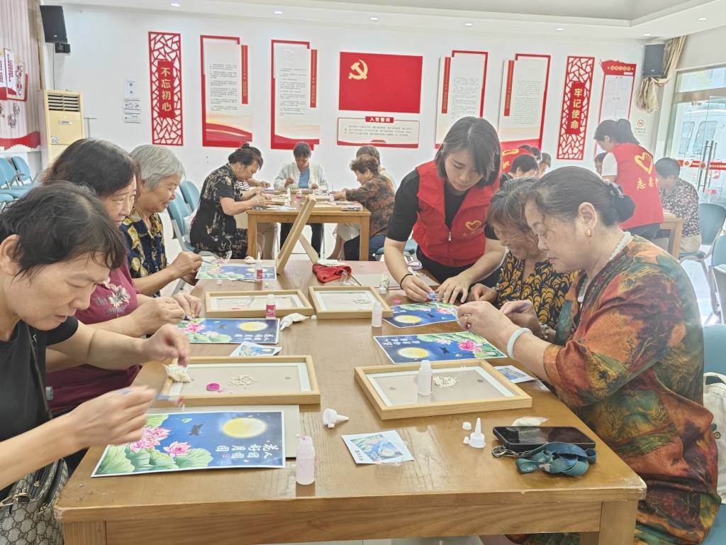 当一个个独一无二的‘花好月圆’相框完成时,老人们纷纷拿起作品细细欣赏,脸上满是成就感。‘这相框不仅好看,还满是中秋的味道,回家就能摆在家里当装饰!’一位阿姨笑着说。此次活动不仅让退休老人们在动手过程中收获了快乐,也进一步拉近了邻里情谊,为构建和谐社区注入了温暖力量,同时也为后续社区志愿者团队的组建积累了人气与基础。