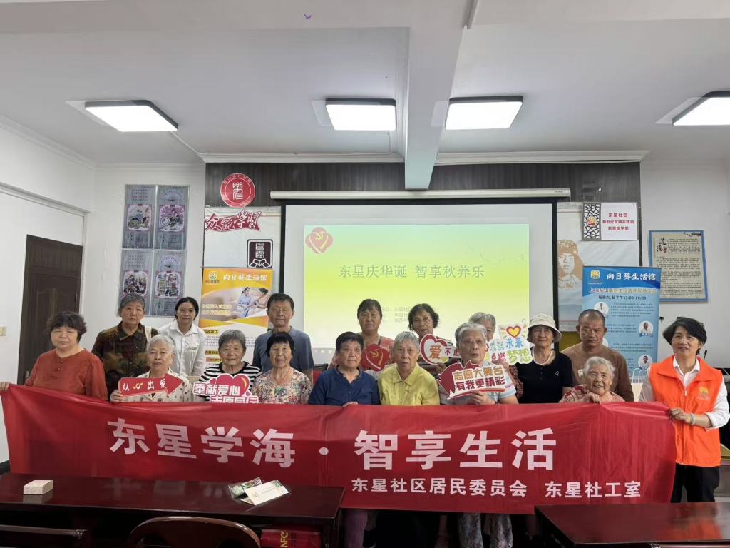 为庆祝国庆华诞,丰富社区老年居民的精神文化生活,传递科学养生理念,2025年10月15日下午,昆山东星社区在三楼活动室举办‘东星庆华诞 智享秋养乐’主题活动,23位老年居民踊跃参与,共赴一场兼具知识与乐趣的‘智慧养生’之约。