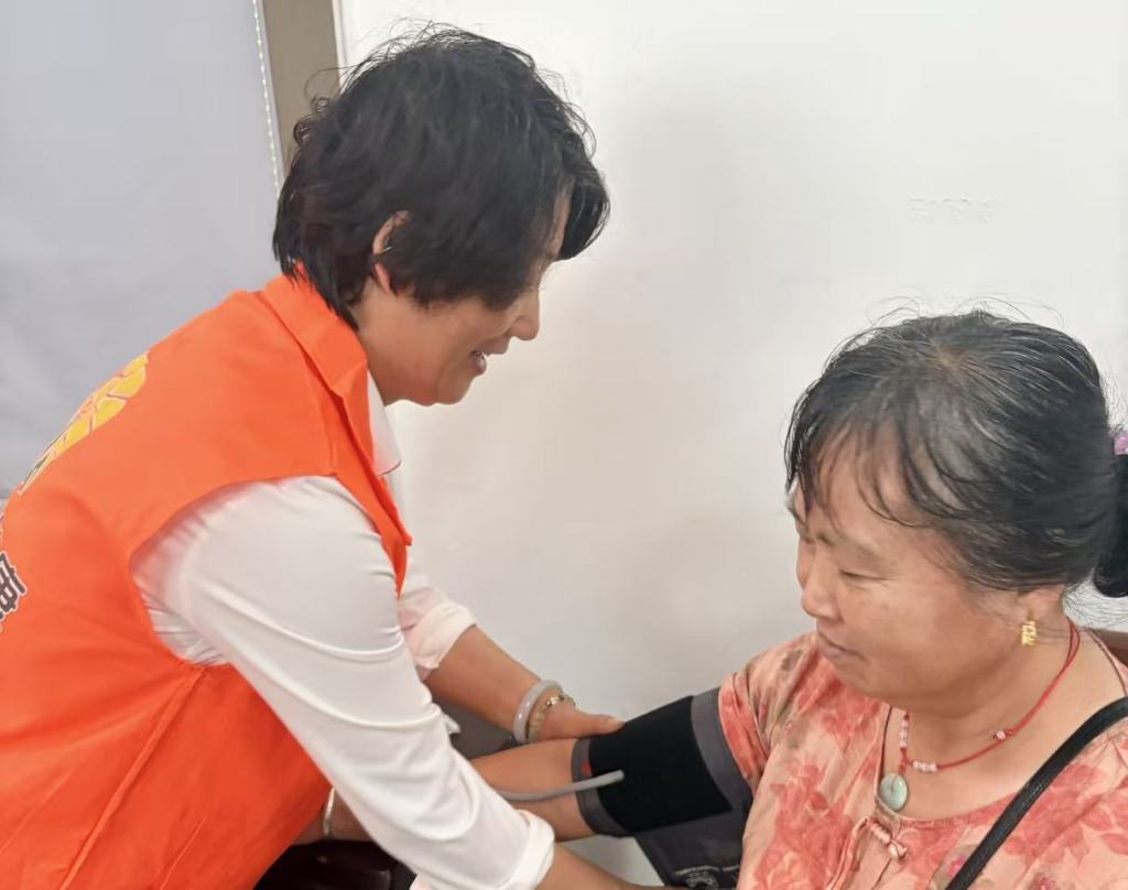 中医讲座后,免费血压测量服务随即展开。社区工作人员与志愿者分工协作,为居民测量血压、记录数据,并提供个性化健康建议:对血压正常者叮嘱日常养生事项,对血压偏高者结合生活习惯讲解饮食调整与监测方法,让居民在家门口享受专业健康服务。