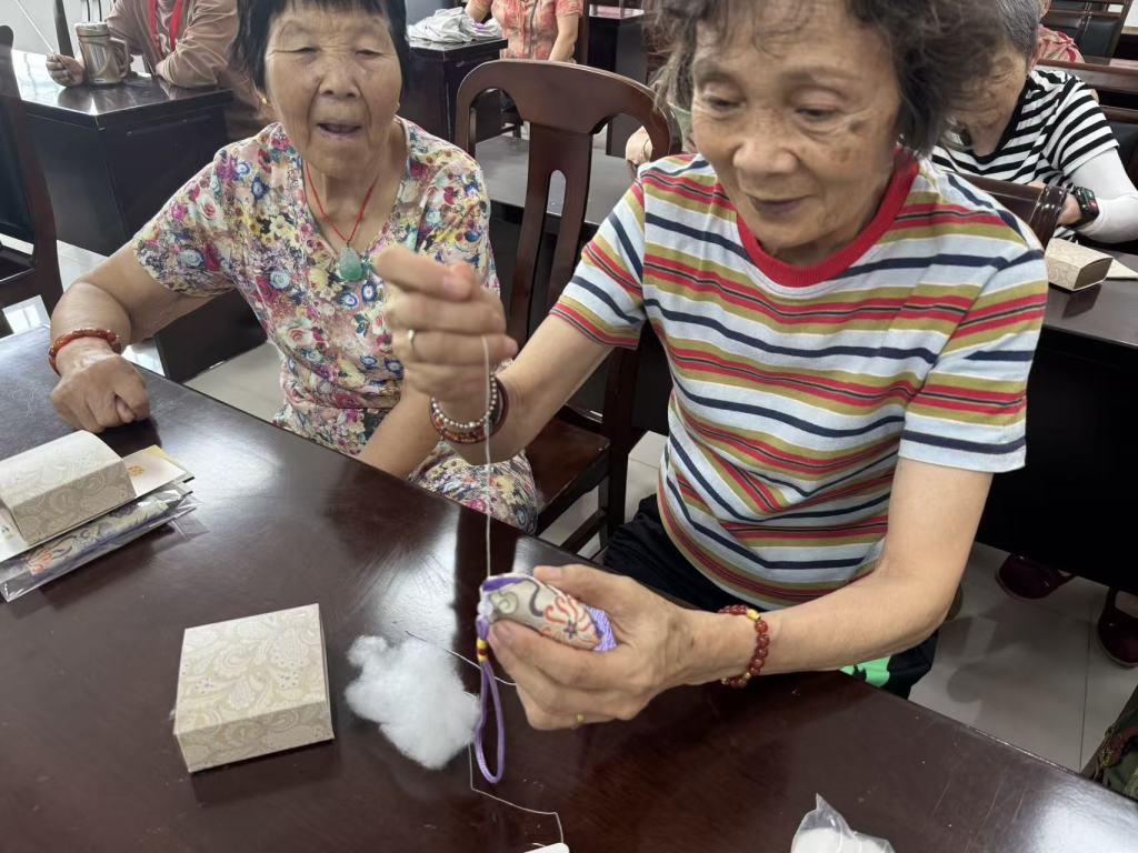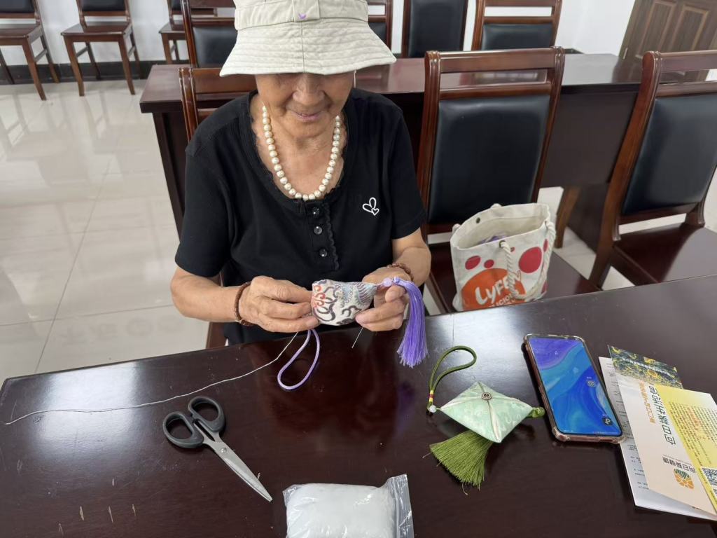 手工香囊制作环节将活动氛围推向高潮。社区提前准备含艾叶、丁香等药材的材料包,志愿者演示缝制步骤后,居民们互相帮忙穿针引线,制作出散发药香的养生香囊。大家展示作品、交流心得,在动手实践中深化对传统药材养生价值的理解。参与活动的王阿姨表示:‘这场活动太实用了,不仅学到了秋天保养身体的好方法,还拿到了自己做的养生香囊,邻里之间也更熟络了!’