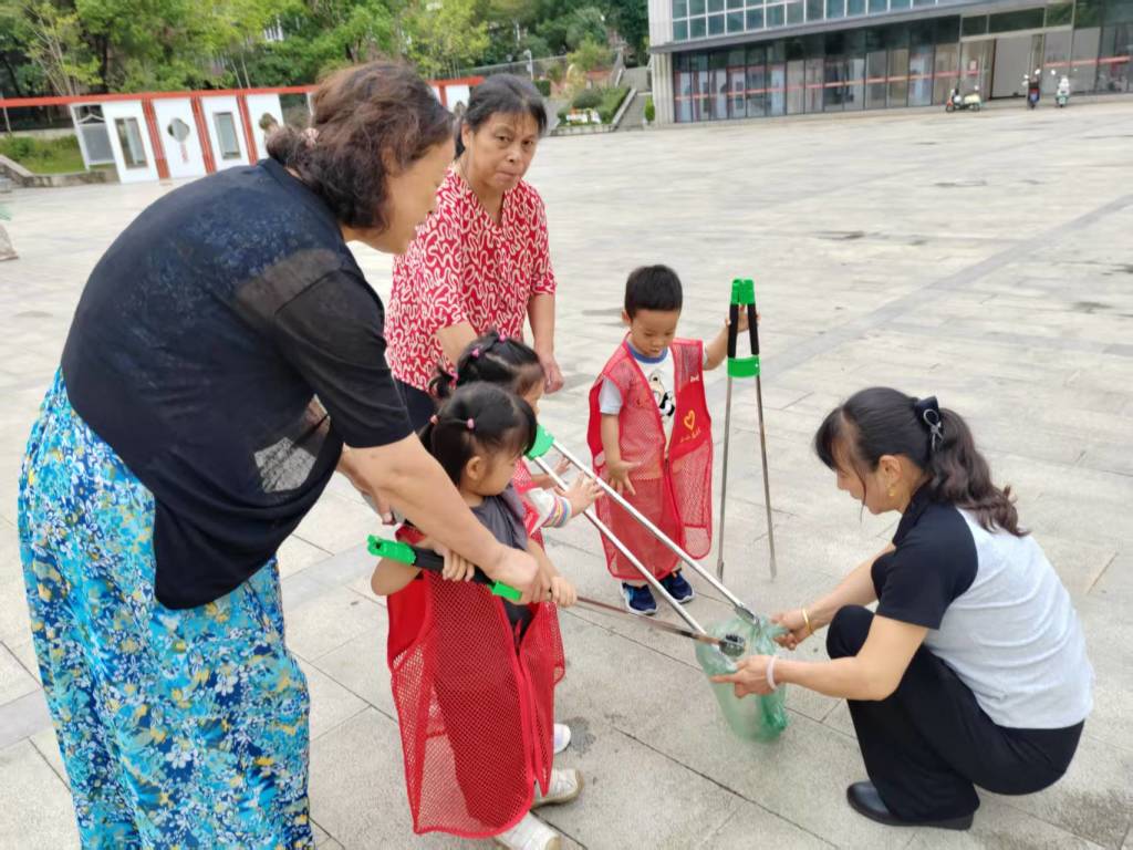 活动伊始,社工以生动有趣的动画短片引入主题,向亲子家庭讲解“社区是我家,爱护靠大家”的理念。通过提问互动:“垃圾应该扔在哪里?”“怎样让社区更漂亮?”引导孩子们思考个人行为对环境的影响。随后,社工为每位小朋友穿上红色志愿者马甲,正式开启“小小志愿者”的使命之旅。在社工与家长的陪伴下,孩子们手持垃圾夹、环保袋,分组对社区花园、道路两旁的纸屑、烟头、落叶等进行清理。活动中,孩子们化身“火眼金睛”,连藏在灌木丛中的小垃圾也不放过。4岁的乐乐一边捡起空瓶一边说:“这个不能乱扔,会污染小草的家!”家长王女士感慨:“平时孩子在家很少主动劳动,今天却抢着干活,还一直提醒我‘妈妈,垃圾要分类’,这样的活动太有意义了!”
