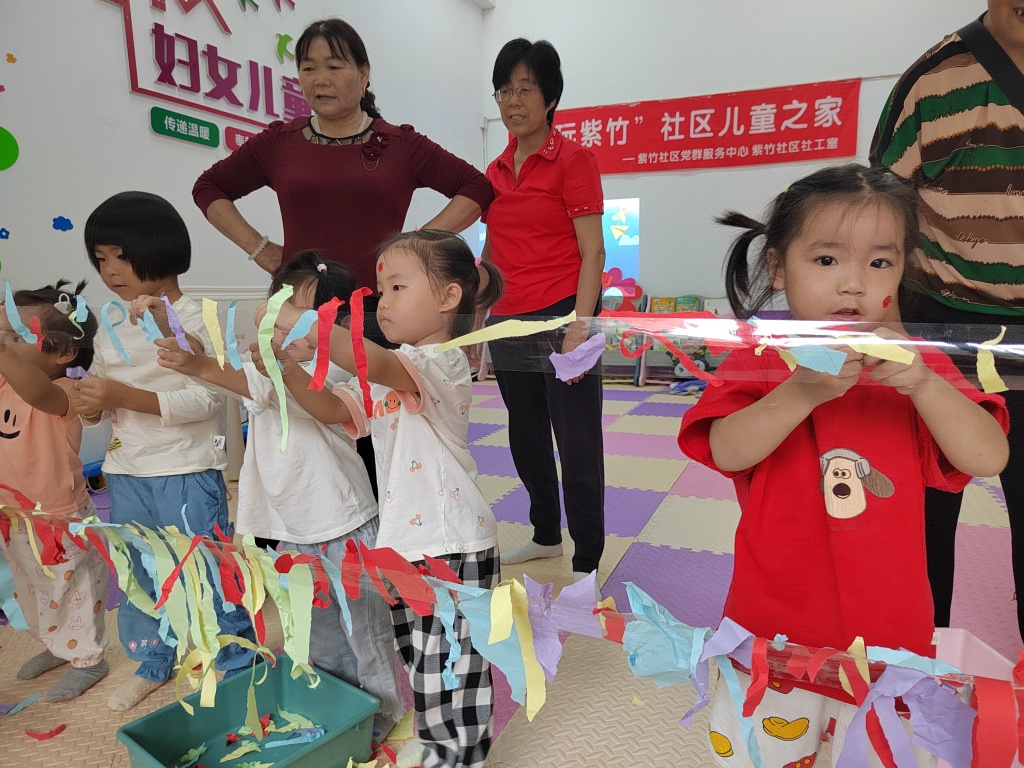 为助力0-3岁婴幼儿感知觉与肢体协调性发展,满足社区居民对精神文化生活的需求,2025年10月16日,紫竹社区儿童之家成功举办了一场以“纸趣无穷 创意无限”为主题的感统游戏活动。活动吸引了10组家庭参与,现场气氛热烈,欢声笑语不断。
