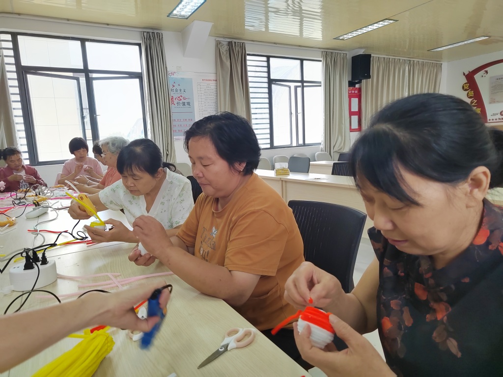 活动接近尾声,大家纷纷亮出自己的‘作品’:有的小兔子捧着粉色康乃馨,温柔俏皮;有的戴着红色蝴蝶结,灵动活泼;还有的被大家创意性地加上了毛绒尾巴,更显憨态可掬。大家拿着亲手制作的挂件相互合影,活动中心内满是欢声笑语。此次‘银龄创意 扭扭棒持花’活动,不仅让社区长者掌握了扭扭棒手工制作的小技巧,丰富了晚年精神文化生活,更搭建了邻里交流的温馨平台。下一步,紫竹社区将继续聚焦长者群体需求,开展更多形式多样的文化活动,让‘银龄时光’更具幸福感与归属感。