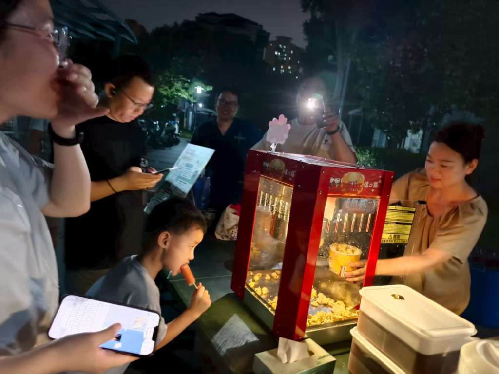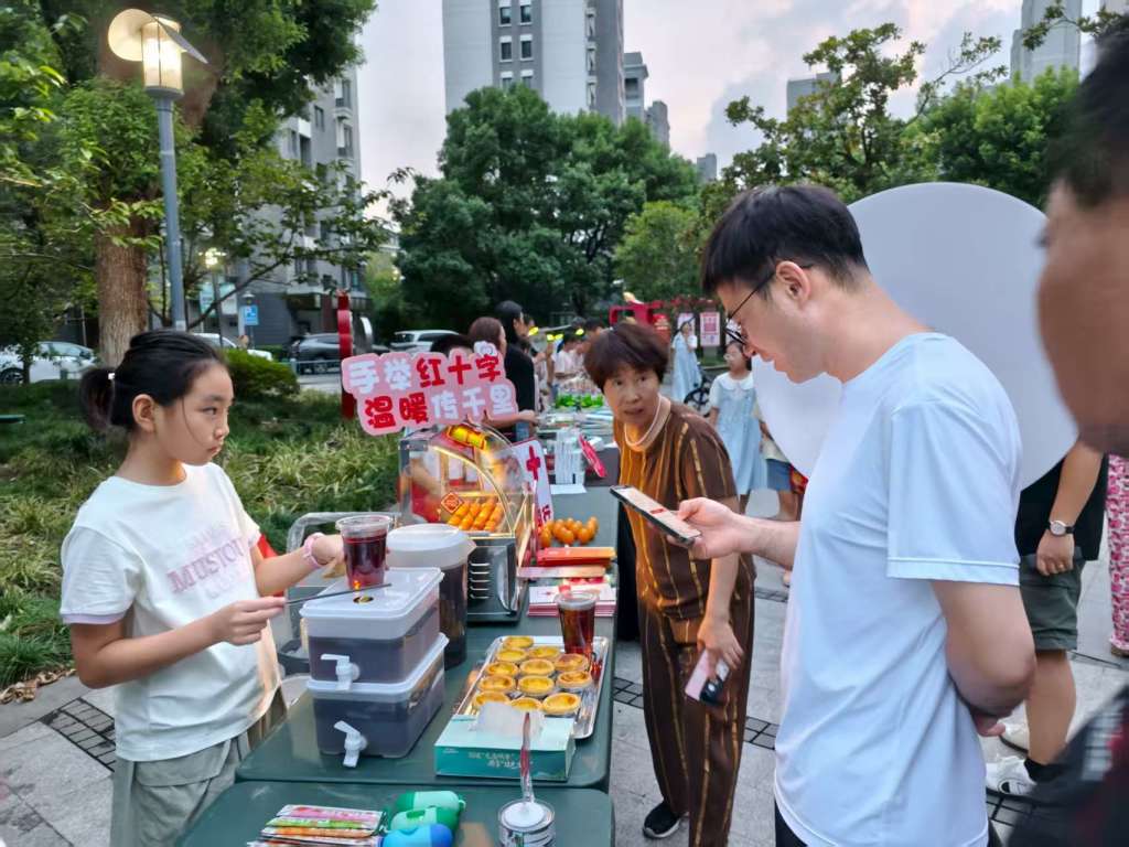 活动现场设置三大特色区域:儿童义卖摊位上,小朋友们将闲置玩具、图书、手工艺品等整齐陈列,热情推销商品。‘阿姨,这个玩偶只要5块钱,卖的钱可以帮助有需要的人。’稚嫩的声音里透着认真,家长们纷纷点赞活动对培养孩子爱心与沟通能力的积极作用。美食摊位前,小志愿者们化身‘小老板’,现烤蛋挞、烤肠、酸梅汤等美食深受居民喜爱。‘小朋友,给我来两份蛋挞。’‘好的,阿姨,一共10块钱,谢谢您的爱心!’这样的对话此起彼伏,居民表示既能品尝美食又能奉献爱心,一举两得。共建单位助力区同样热闹,牙博士口腔医院与爱心动物医院提供物资支持,小志愿者们售卖牙刷牙膏、宠物零食,并耐心讲解口腔健康与宠物护理知识。一位带宠物前来的居民感慨:‘这样的活动很有意义,既能买到实惠商品,又能学到专业知识,还能为社区做贡献。’