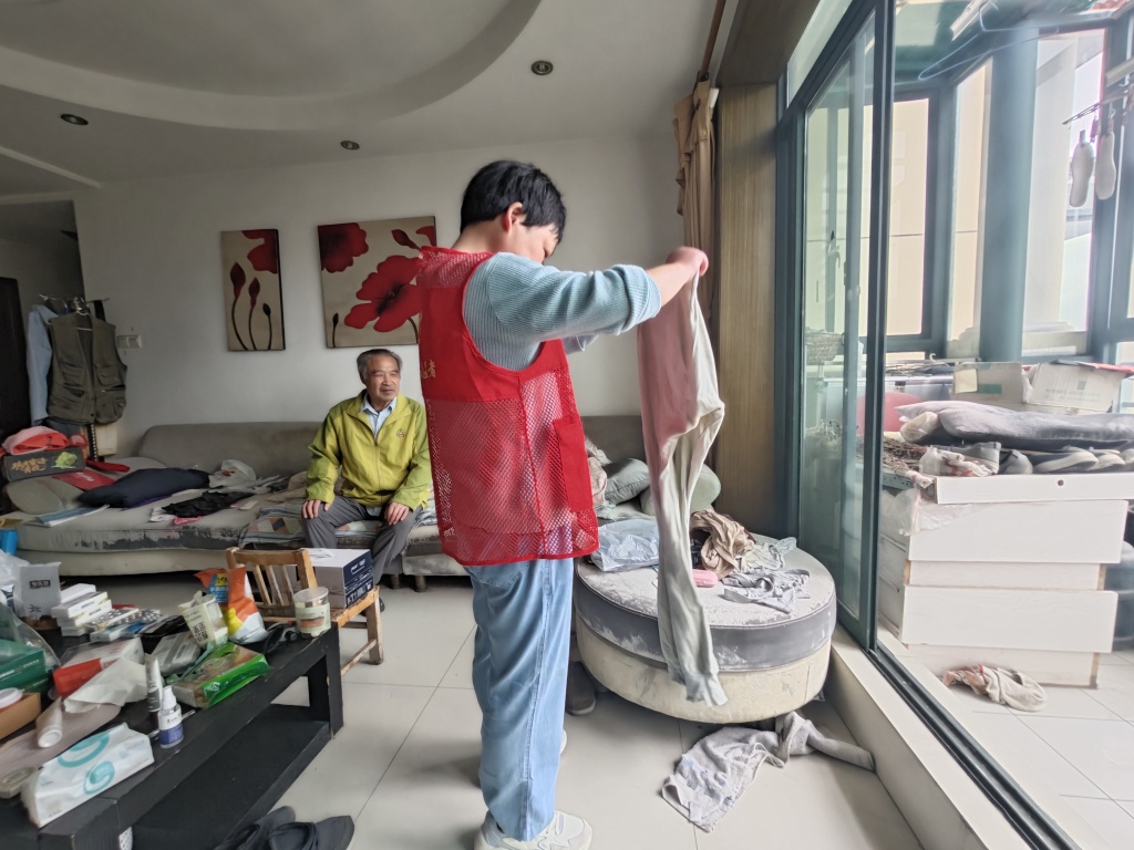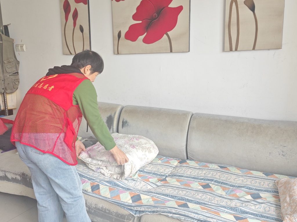 活动当天,由低龄老人组成的志愿服务队身着统一马甲,走进居民家中开展服务。在90岁以上老党员李热行家中,志愿者们围坐倾听老人讲述革命故事,屋内欢声笑语不断;针对独居老人陈庆国生活不便的问题,志愿者们主动整理衣物、叠被擦桌,并递上慰问品,叮嘱老人注意秋季保暖与用电安全。高龄老人们感动地表示:‘志愿者们就像自家孩子一样贴心,让我们感受到了社区的温暖。’