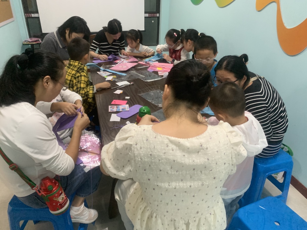 互动分享环节掀起活动高潮。社工以‘如果你的朋友被嘲笑,你会怎么做?’引发讨论,孩子们争先发言:‘我会陪他一起练习,告诉别人我们很棒!’‘我要画一幅画送给他!’家长则通过案例反思家庭教育中的鼓励方式。在‘趣味手工’环节,亲子合作制作‘爱心文具盒’,孩子们和家长一起动手,画面无比温馨。活动尾声,全体家庭手持作品合影,领取‘追光勇气勋章’,承诺‘每天为自己和同伴加油’。
