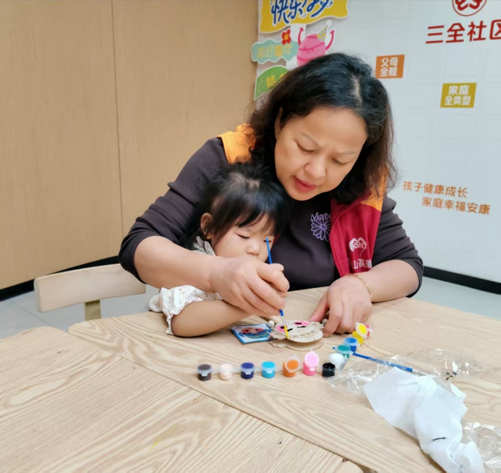 活动伊始,一场趣味十足的亲子互动游戏拉开了序幕。家长与孩子们默契配合,共同完成了游戏任务,在欢声笑语中增进了情感联结,也让现场氛围迅速升温。随后,社区社工带领孩子们跳起了活力满满的韵律操,大家跟着节奏舒展身体、欢快律动,充分展现了孩童们的天真烂漫与蓬勃朝气。最受期待的当属京剧拨浪鼓制作环节。社工先向孩子们介绍了京剧的基本文化知识和拨浪鼓的传统寓意,随后细致讲解了制作步骤与技巧。孩子们在家长的协助下,有条不紊地进行裁剪、粘贴、装饰,将对京剧文化的好奇与想象融入手中的作品。不一会儿,一个个色彩鲜艳、带着京剧元素的拨浪鼓便制作完成。孩子们挥舞着自己的成果,脸上洋溢着自豪与喜悦。此次活动不仅为亲子家庭提供了互动交流的平台,更让孩子们在轻松愉快的氛围中近距离接触传统文化,激发了他们对传统艺术的兴趣。未来,杨林社区社工室将持续开展更多丰富多彩的文化活动,为社区儿童的成长注入更多温暖与活力。