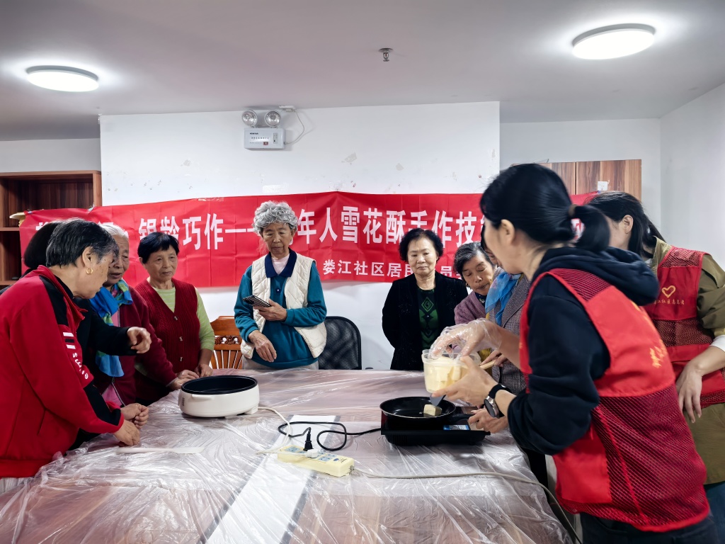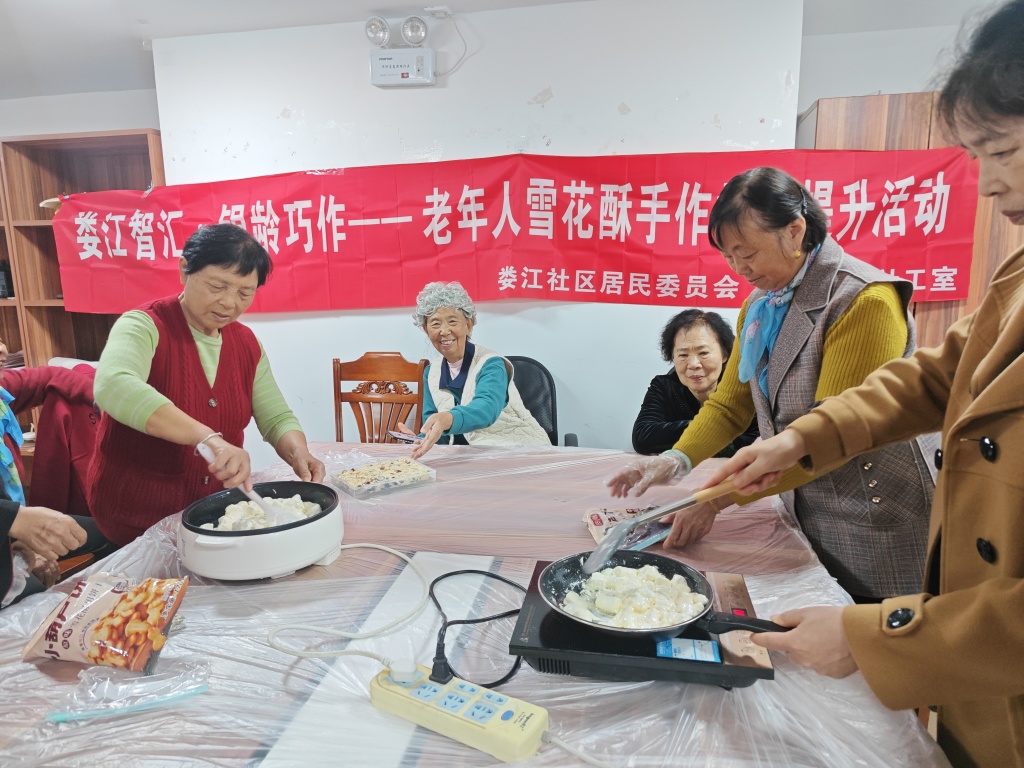 为丰富辖区老年人的精神文化生活,助力其紧跟时代步伐,2025年11月5日下午,娄江社区在日照中心活动室精心组织开展了以“雪花酥制作”为主题的老年人技能提升班活动。本次活动由昆山高新区娄江社区主办、昆山益佳善志愿服务中心承办,吸引了20位社区老年居民热情参与,4名志愿者全程协助,在欢声笑语中为老年生活注入新活力。