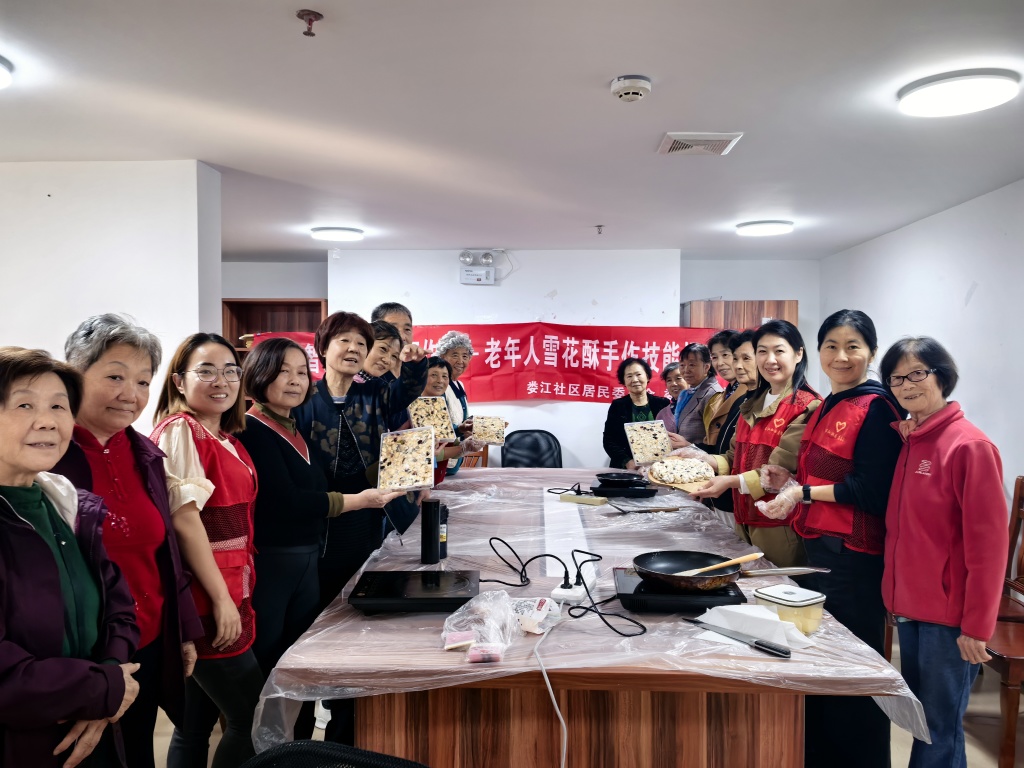 当亲手制作的雪花酥新鲜出炉,老人们看着自己的成果,脸上洋溢着满满的成就感。不少居民感慨,这是第一次亲手做雪花酥,不仅体验到了手工制作的乐趣,还学会了一项新技能,非常有意义。大家纷纷表示,感谢社区搭建这样的平台,让他们在互动中增进邻里情谊,也让晚年生活变得更加充实有趣。此次雪花酥手作活动,不仅让老年居民掌握了一项实用的手工技能,更丰富了他们的业余生活,传递了社区对老年群体的关爱。未来,娄江社区将继续开展更多贴合老年人需求的特色活动,助力老年朋友们老有所学、老有所乐,营造和谐温暖的社区氛围。