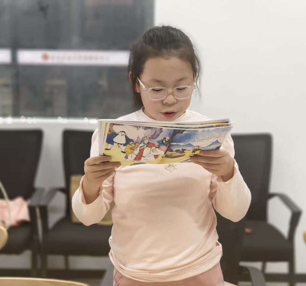在“绘本故事朗读”环节,孩子们轮流上台,声情并茂地朗读了经典桥段《三打白骨精》。他们时而模仿孙悟空的英勇果敢,时而表现出唐僧的善良迂腐,将故事中的人物情感展现得淋漓尽致。家长们认真倾听,不时为孩子们的精彩表现鼓掌点赞。通过朗读,孩子们不仅提高了语言表达能力,更深入体会了故事中所蕴含的善恶观念。
