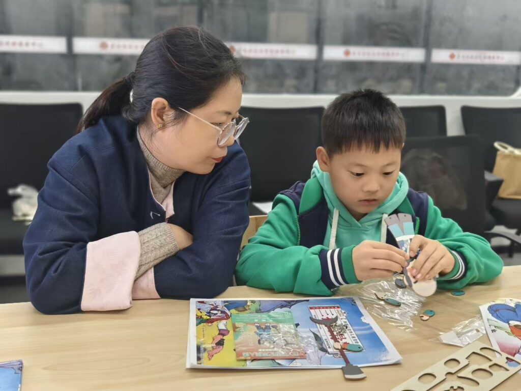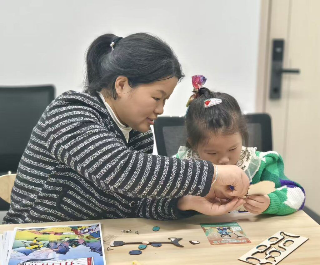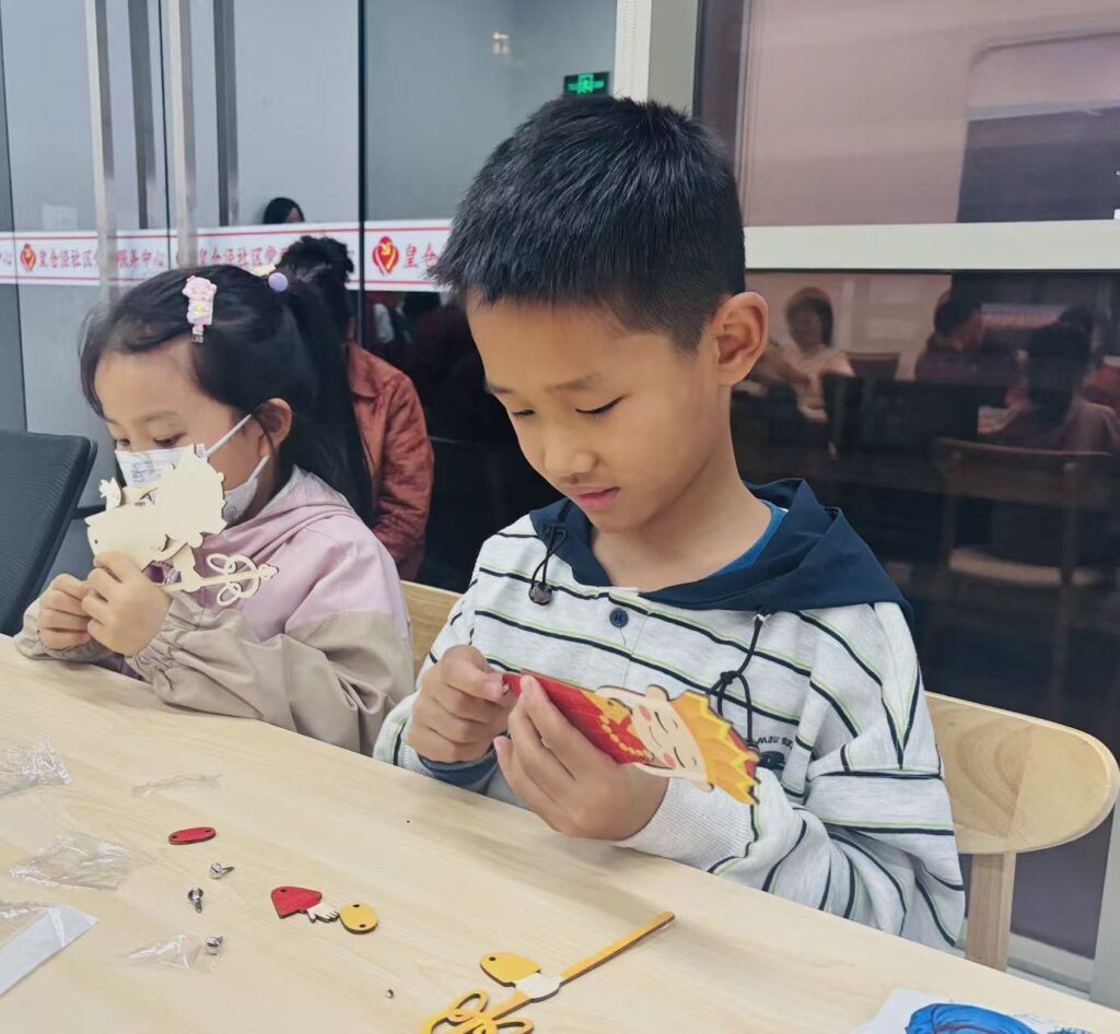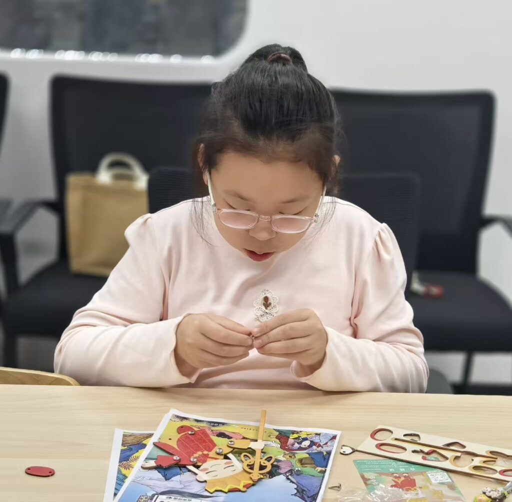 最令人期待的“国潮西游木偶拼装DIY”环节将活动推向高潮。老师为每个家庭分发了国潮风格的西游木偶拼装材料包。家长与孩子们默契配合,分工协作,小心翼翼地拼装着木偶零件。从打磨木块到组装关节,再到为木偶贴上精美的装饰,大家耐心细致,沉浸在手工创作的乐趣中。不一会儿,一个个惟妙惟肖的孙悟空、唐僧等西游木偶便诞生了。孩子们拿着自己亲手制作的木偶,兴奋地相互展示,脸上洋溢着自豪与喜悦。