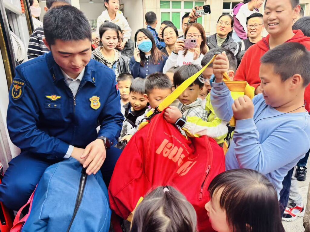 安全知识课堂上,指战员结合家庭火灾案例,讲解家用电器使用安全、初期火灾扑救、火场报警等常识,通过“提问互动+情景模拟”的方式,让家长和孩子牢记“119”报警要素、家庭防火“三清三关”等关键内容。活动最后,亲子家庭向消防指战员献上亲手制作的感谢卡片,用稚嫩的话语表达敬意,指战员则为孩子们送上消防主题小礼品,鼓励大家争当“家庭安全小卫士”。