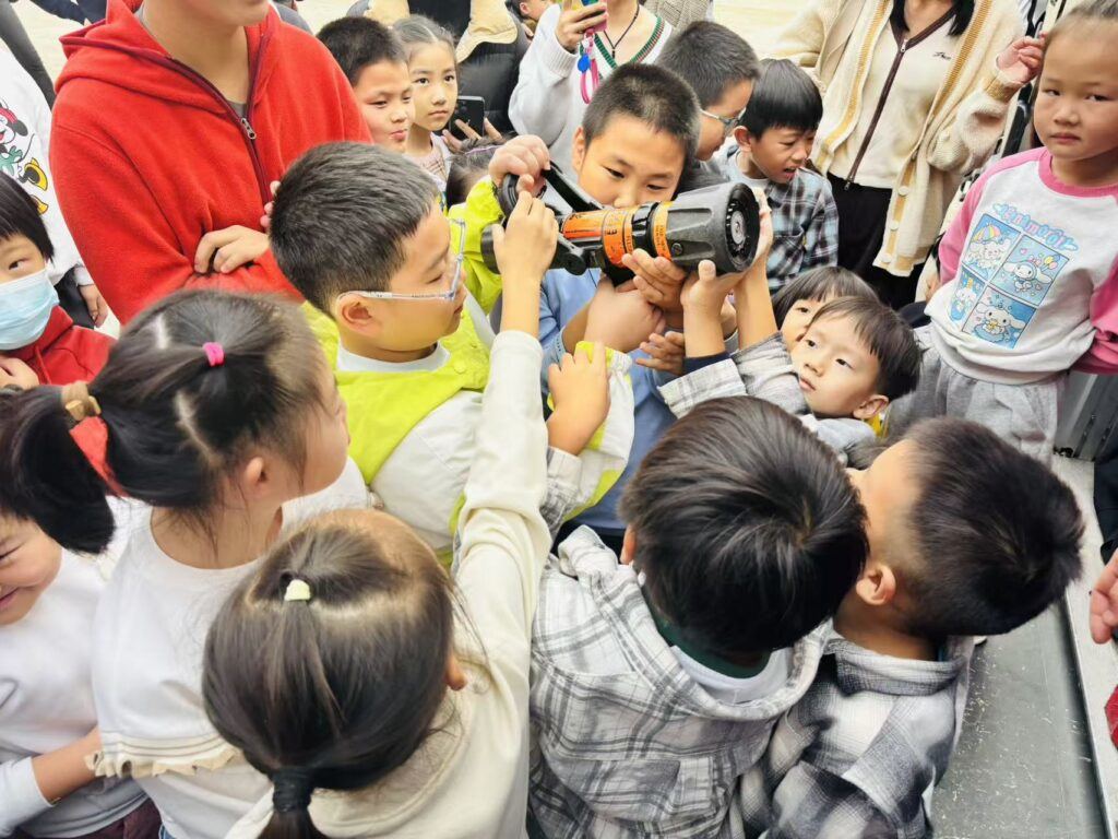 活动伊始,消防指战员化身“安全导师”,带领亲子家庭参观消防车辆装备。从威武的水罐消防车到专业的抢险救援车,指战员用通俗易懂的语言讲解车辆功能、各类救援器材用途,手把手教孩子们认识消防水带、空气呼吸器等装备。当孩子们亲手触摸厚重的消防服时,眼中满是好奇与敬畏,纷纷追问“这件衣服能防火吗?”“叔叔们穿它会不会热?”,指战员耐心解答的同时,悄悄传递着消防职业的责任与担当。