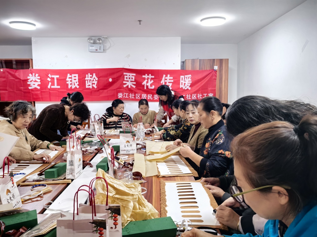 2025年11月10日,昆山高新区娄江社区罗马假日日照中心内暖意融融,由娄江社区主办、昆山益佳善志愿服务中心承办的“娄江银龄・栗花传暖”活动在此举行。活动以“以老养老、邻里互助”为主题,通过创意手工形式搭建爱心传递平台,吸引20位社区低龄老年志愿者、3名志愿者及普通居民、党员等多元群体参与,共同为高龄老人送上节日关怀,奏响邻里同心、共筑幸福社区的和谐乐章。