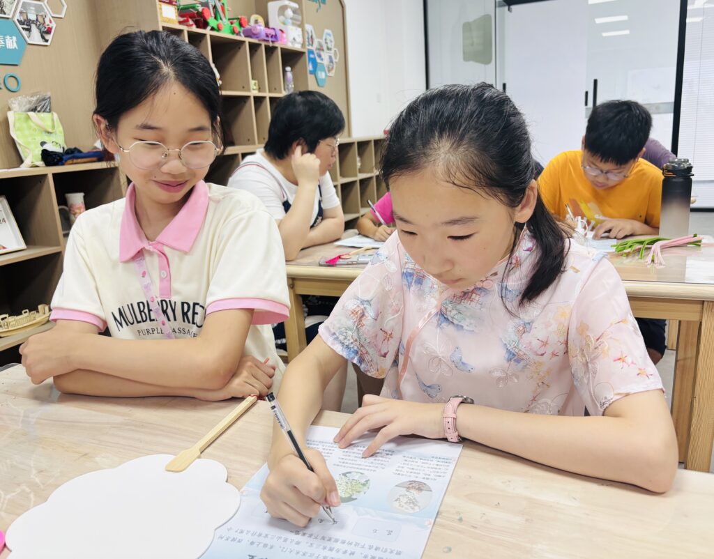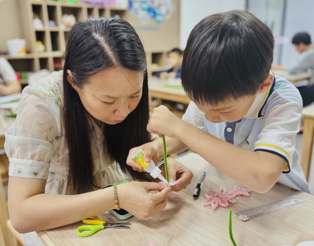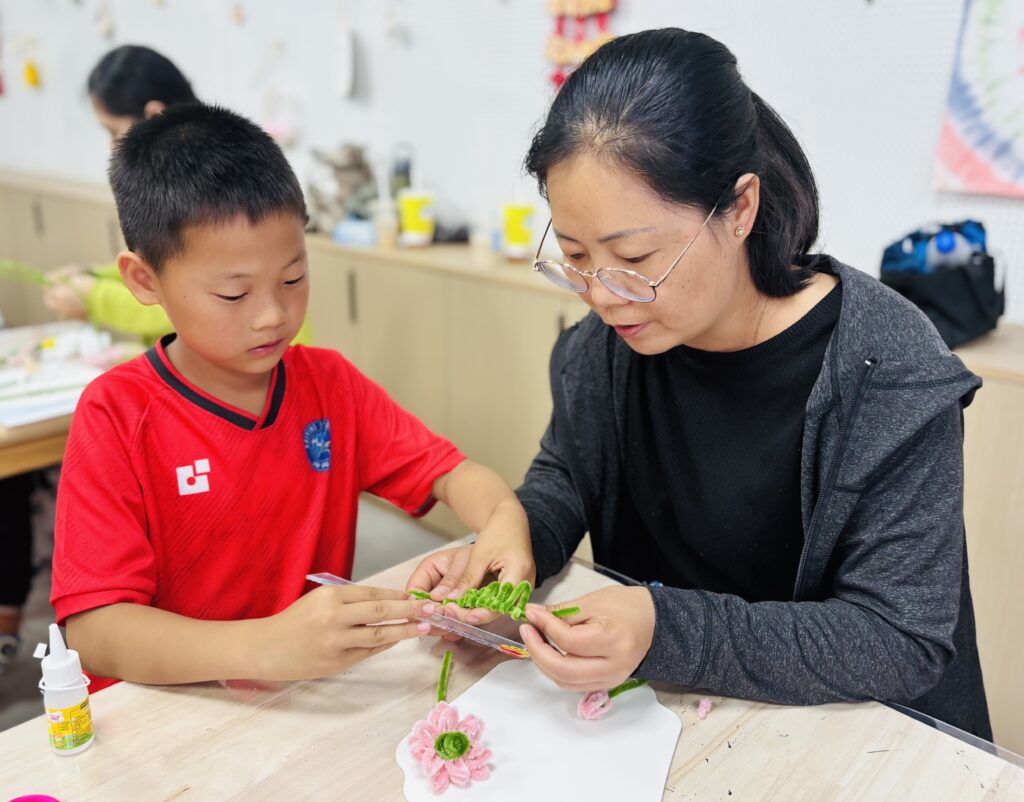 在莲花团扇扭扭棒DIY活动中,孩子们以扭扭棒为材料,亲手制作莲花造型团扇,将并蒂莲这一特色文化元素融入其中。在制作过程中,大家相互交流、学习,充分发挥创造力,将对昆山文化的理解与热爱融入每一个作品。看着自己亲手制作的精美团扇,孩子们脸上洋溢着自豪与喜悦,在感受手工制作乐趣的同时,也加深了对昆山文化的理解与传承。
