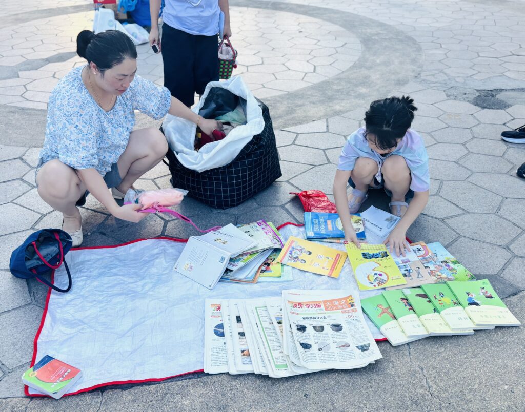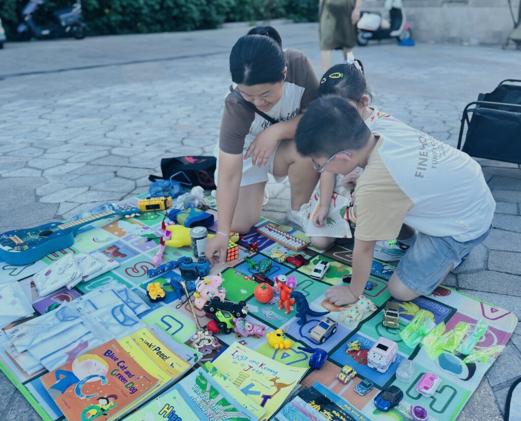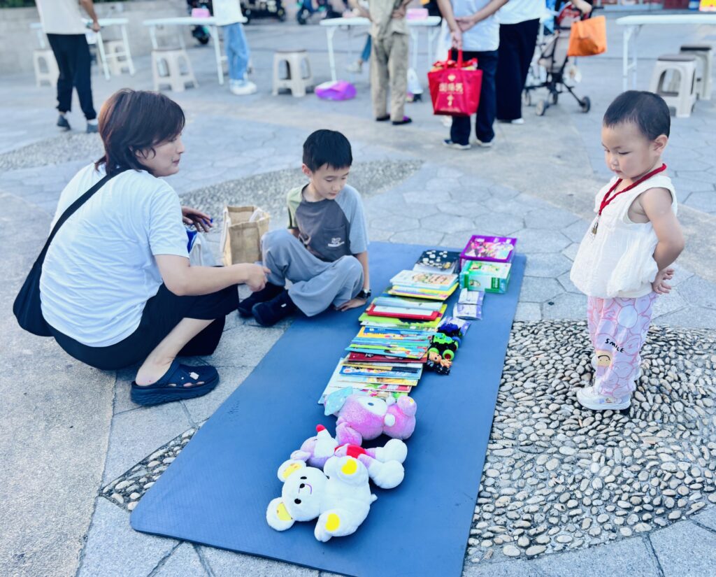 随后,摊主们有条不紊地布置摊位,志愿者们则在一旁热心协助,帮忙张贴价签、悬挂“爱心摊主”标识。小小的摊位被用心装点,有的摆满了色彩斑斓的玩具,有的陈列着散发墨香的书籍,有的摆放着充满创意的手工艺品,每一个角落都充满了温馨的氛围。