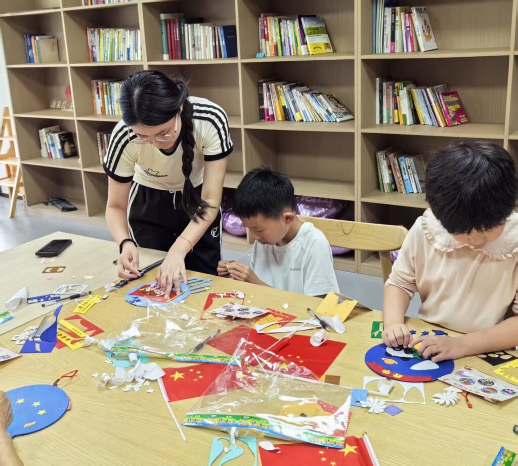 活动最后,“DIY国庆节挂饰”手工创作环节将氛围推向高潮。工作人员提前准备了红色卡纸、金色丝带、五角星贴纸、天安门图案模板等材料,大家围坐在一起,亲手制作国庆挂饰。老人们耐心指导年轻人如何搭配元素,现场呈现出老少协作、其乐融融的画面。不一会儿,一个个融入国旗、五角星、天安门等国庆元素的挂饰相继完成,大家手持自己的作品合影留念,脸上洋溢着成就感与喜悦。