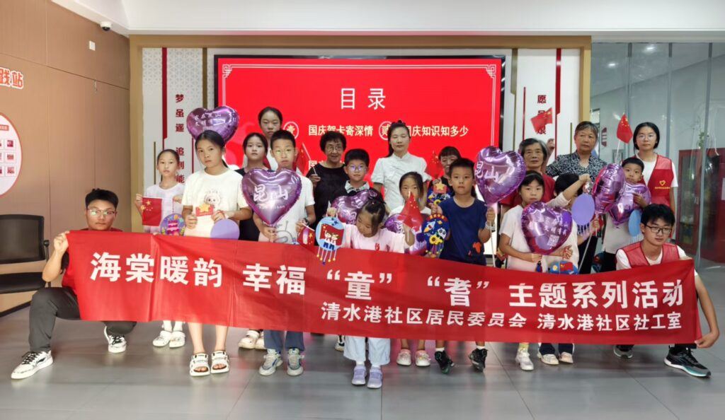 为进一步弘扬爱国主义精神,增进老少群体代际情感联结,同时以双节为契机传递社区关怀,清水港社区于10月1日开展了“国庆遇生辰 老少乐相融”共贺双喜庆典活动。通过趣味互动、知识科普与手工创作相结合的形式,让社区居民在欢乐氛围中感受节日喜悦,深化家国情怀。