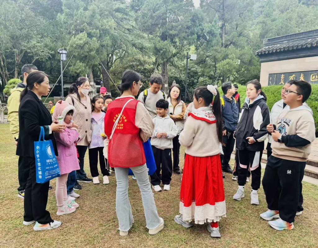 活动当天,社区亲子家庭齐聚亭林公园,沿着古朴的城道缓步登高。秋日的阳光透过树叶洒在青石板上,斑驳的光影与城墙的历史气息交相辉映。大家一边欣赏园内美景,一边诵读《九月九日忆山东兄弟》等经典诗词,重温重阳节的历史渊源与文化寓意。登上城墙后,大家互相送上诚挚的祝福,延续了“登高祈福”的传统,寄托了对长辈和亲友的美好祝愿。
