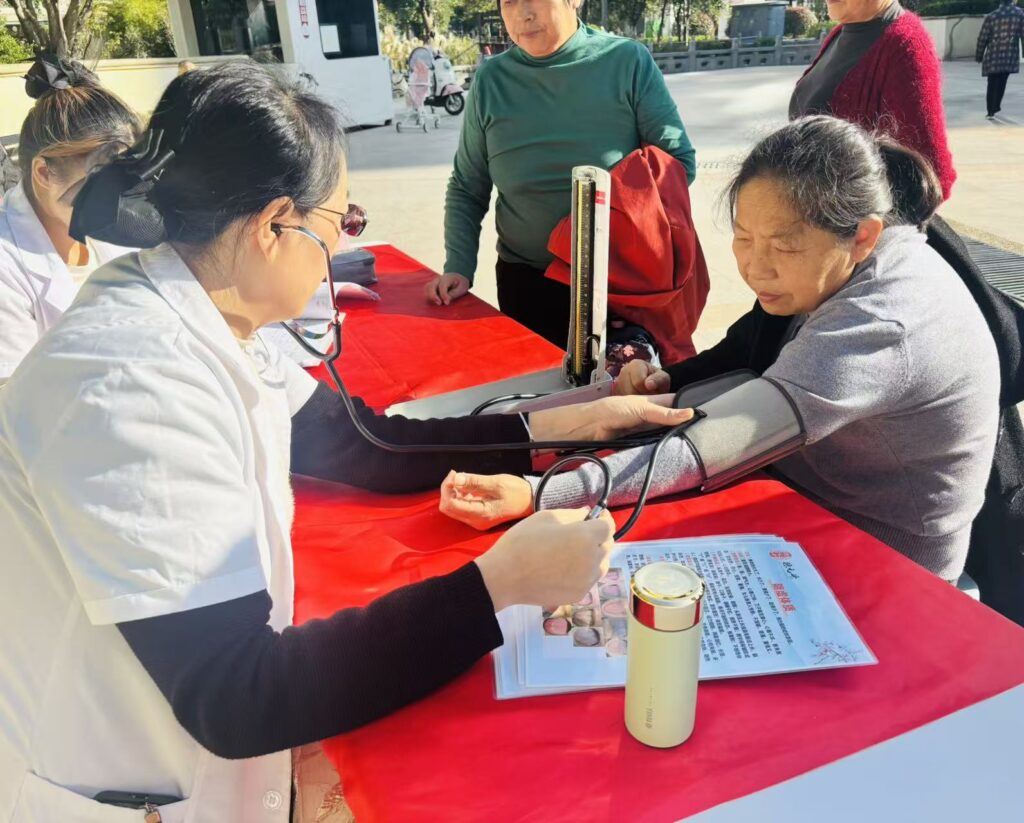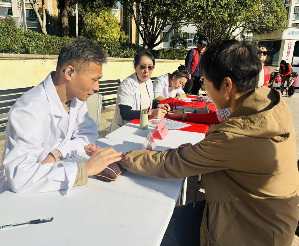 活动现场人头攒动,各项服务点位前都围满了前来体验的居民。健康服务区内,医护人员耐心细致地为居民测量血压、检测血糖,针对血压血糖异常的居民,讲解饮食调理、用药注意事项等健康知识;中医把脉摊位前,中医师通过望闻问切为居民诊断体质,提供个性化养生建议;口腔检查则聚焦居民口腔健康,医生仔细检查牙齿状况,普及口腔保健常识,提醒大家重视口腔疾病的预防。