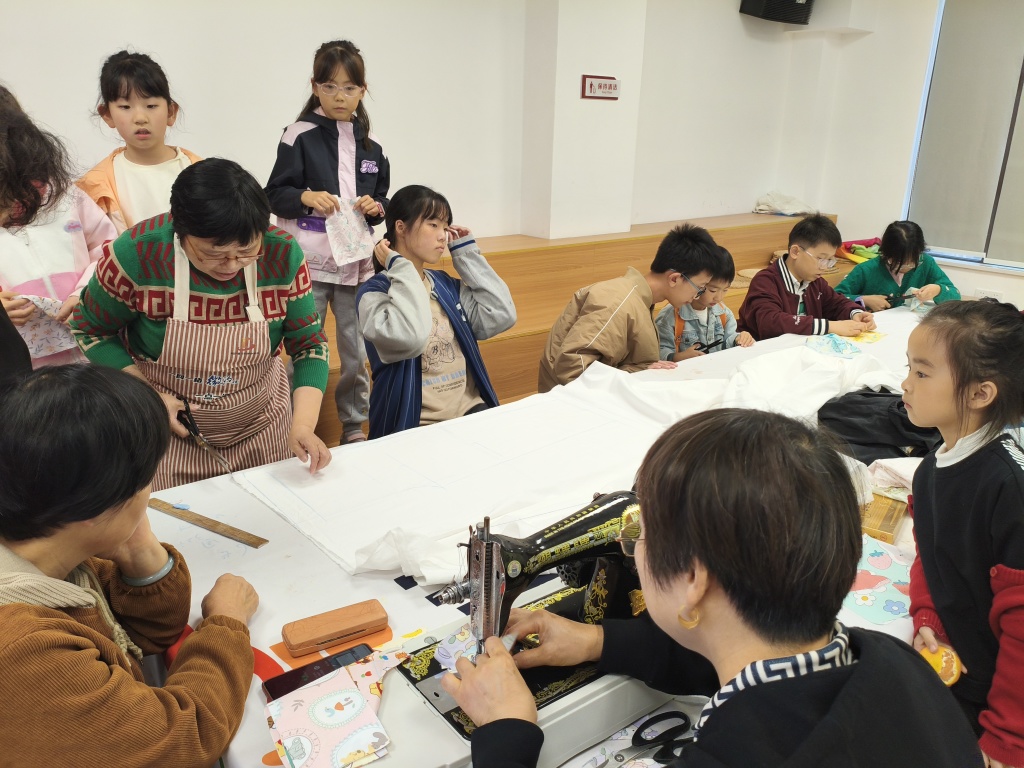 活动从“温故知新”开始,老师带领孩子们回顾了平针缝、回针缝等基础缝纫技巧。随后进入“设计与裁剪”环节,孩子们在社工的指导下,学习使用纸样拓印、安全裁剪布料,一步步将想象转化为实物。最令人期待的“缝合与制作”环节中,孩子们专注地将布料缝合并发挥创意。
