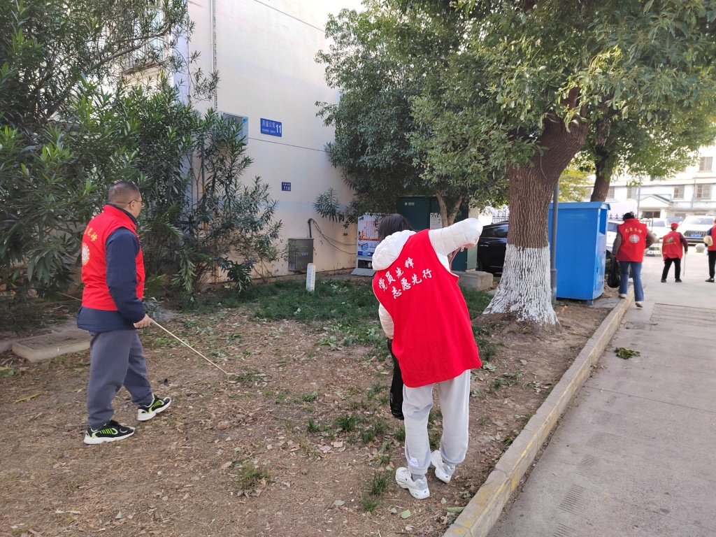 上午8点,身着红色党员马甲与蓝色志愿服装的队伍准时集结,手持垃圾夹、垃圾袋等工具,按照预先划分的网格区域分头行动。党员们佩戴党徽冲锋在前,充分发挥先锋模范作用,带领志愿者们重点清理小区主干道、绿化带、楼道拐角等易积存垃圾的区域。大家弯腰俯身,细致捡拾散落在草丛中的塑料袋、烟头、纸屑等杂物,对墙角缝隙、围栏底部等卫生死角进行“地毯式”清理,不放过任何一处细小垃圾。遇到粘在路面的顽固污渍,志愿者们便用铲子耐心铲除;看到绿化带中缠绕的废弃线缆,大家默契配合逐一清理,现场一派热火朝天的劳动景象。经过近一个小时的辛勤劳作,社区道路整洁通畅,绿化带清爽有序,累计清理各类垃圾12袋,清理卫生死角8处,辖区环境面貌焕然一新。