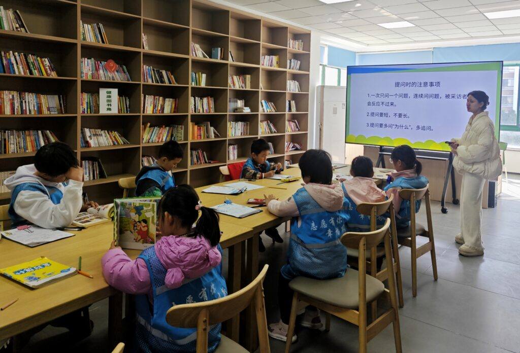 小记者培训环节,社工老师结合实际案例,向孩子们讲解采访的基本礼仪、提问技巧及注意事项。从“如何清晰表达提问意图”到“怎样礼貌回应采访对象”,从“记录关键信息的方法”到“灵活应对突发情况的技巧”,小记者们认真聆听、积极提问,时不时低头记录重点,现场学习氛围浓厚。经过培训,孩子们纷纷表示已经掌握了采访的核心要点,迫不及待想要开启实地采访之旅。