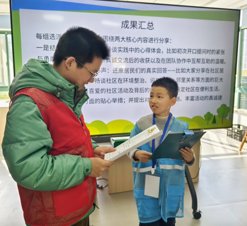 实地采访环节是此次活动的核心。小记者们分成若干小组,带着提前准备好的采访问题,走进社区楼栋,主动向居民发起采访。小记者们举止礼貌、提问清晰,居民们也纷纷热情回应,分享自己对社区生活的体验以及对社区发展的期待,孩子们认真记录每一个回答,不放过任何一个关键信息,小小的身影穿梭在社区的各个角落,成为一道独特的风景线。