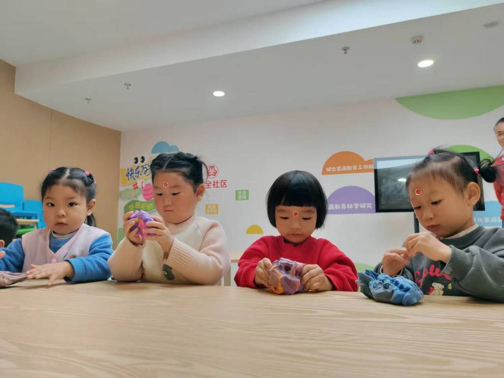 活动的高潮当属创意粘土环节。社工为孩子们分发色彩缤纷的粘土,并耐心讲解捏、揉、搓、压等基础技巧。孩子们充分发挥想象力与创造力,在家长的协助下,将一块块粘土变成可爱的小动物、鲜艳的花朵、精致的小摆件等各式各样的作品。看着自己亲手完成的作品,孩子们的脸上洋溢着满满的成就感。此次活动不仅为孩子们提供了一个发挥创意、展示自我的平台,更让家长们在陪伴中感受亲子互动的温暖。