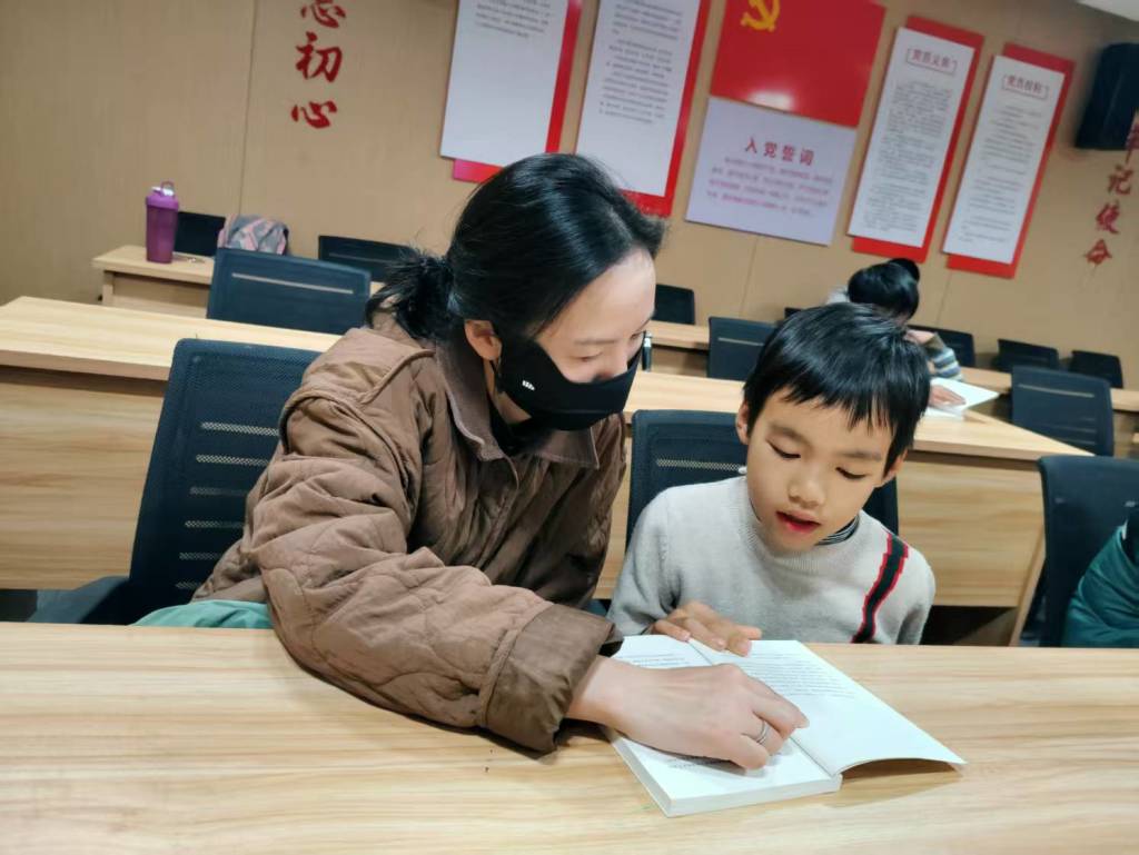 活动伊始,一场简单有趣的拍手操破冰游戏迅速点燃现场氛围。在社工的带领下,家长与孩子们跟随节奏拍手互动,欢声笑语回荡在活动室里,陌生感瞬间消散,亲子间的默契也在互动中悄然升温。破冰环节结束后,社工老师化身领读人,带领亲子家庭共同走进《蛤蟆先生去看心理医生》的第二章内容。大家围坐一圈,在朗朗的读书声中沉浸式感受故事里的温情与成长力量,家长与孩子时而轻声交流感悟,时而专注聆听,温馨的阅读氛围感染着在场的每一个人。