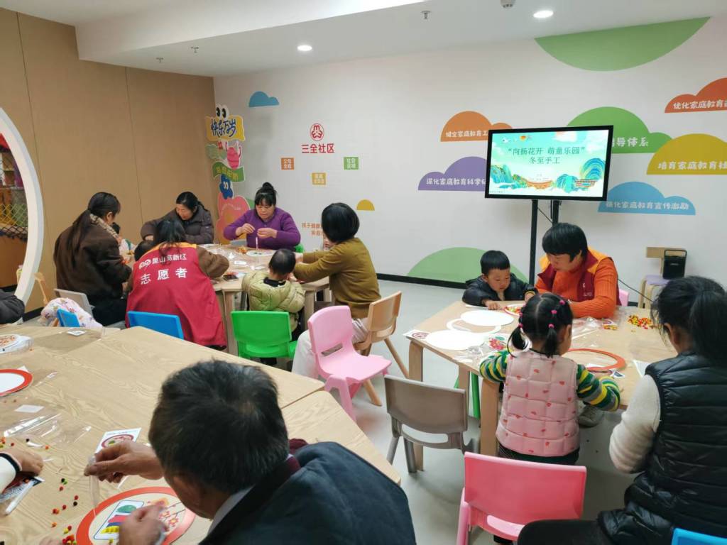 为传承中华优秀传统文化,丰富社区居民精神文化生活,12月19日,杨林社区在儿童馆成功举办“向杨花开·萌童乐园”冬至手工活动,吸引15余组亲子家庭参与。本次活动以趣味游戏、传统文化科普与手工创作相结合的形式,为社区儿童及家长打造了一场充满节日氛围的冬日文化体验。