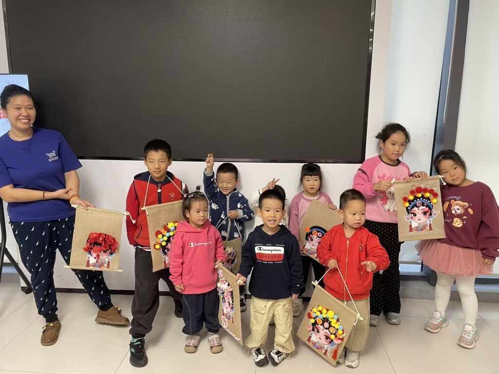 然而,精彩不止于书本。活动的核心环节——手工制作脸谱,将现场气氛推向了高潮。孩子们不再是旁观者,而是成了小小“工匠”。他们利用准备好的鲜花、彩纸、毛线、亮片、织布等丰富材料,开始精心“打造”自己的脸谱。他们不仅是在复制经典,更是在进行艺术创作每一次粘贴,都融入了他们对故事人物的理解和想象。在家长们的协助下,一幅幅立体、生动、充满童趣的手工脸谱逐渐成型。一位参与活动的家长感慨道:“没想到自己也能做出这么漂亮的脸谱!孩子一边做一边问我关公的故事,这个过程比单纯看书听故事印象深多了,真是寓教于乐!”