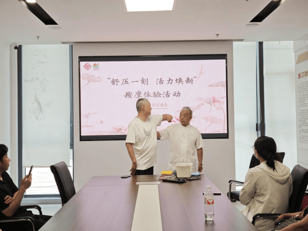 本次活动于 2025 年 7 月 10 日下午在齐贤社区党群服务中心党员之家顺利开展。活动精心筹备了按摩特色服务,内容丰富多样,从多方面为居民舒缓压力、焕活活力。
