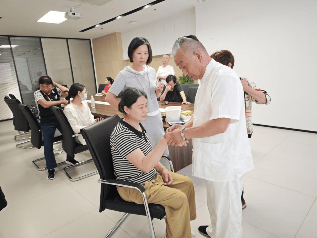 活动现场暖意融融,保芝堂中医诊所的专业老师忙碌而有序地为居民提供各项服务。在肩颈推拿环节,老师们先仔细询问居民的肩颈状况,随后凭借精准娴熟的手法进行按摩,从按压到揉捏,每一个动作都恰到好处。不少居民原本紧锁的眉头渐渐舒展,纷纷表示 “按完之后肩膀轻快多了”,成功缓解了因长期久坐、姿势不当等导致的肩颈酸痛,让紧绷的肌肉得以放松。道家太一乾坤穴位贴服务中,专业老师一边为居民讲解穴位知识,一边根据每个人的体质选取合适穴位进行贴敷,动作轻柔且精准,助力调和身体机能,贴敷后居民们都露出了舒适的笑容,直言 “感觉身上暖暖的,很舒服”。