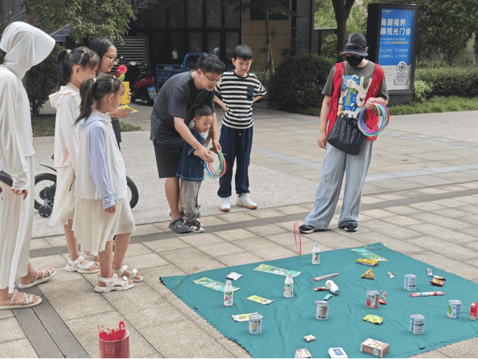 爱心套圈摊位则成为了现场的 “人气王”,彩色的套圈整齐摆放,各类实用小礼品吸引着居民们排队参与。大家站在指定线外,凝神聚力瞄准目标,有的小朋友在家长的指导下小心翼翼投掷,有的成年人则凭借精准技巧屡获佳绩,套中礼品时的欢呼声此起彼伏,将活动氛围不断推向高潮。