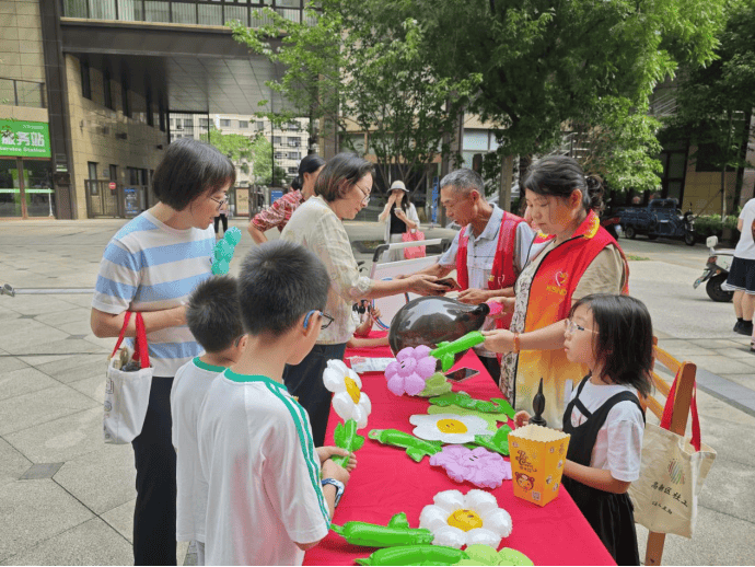 此外,活动现场还为居民们免费发放纪念花朵气球,色彩鲜艳的气球搭配着精致的花朵装饰,深受孩子们的喜爱。大家手拿着气球,在各个摊位间穿梭游玩,时而驻足参与互动游戏,时而与邻里畅谈欢笑,整个小区都沉浸在欢乐、和谐的氛围中。