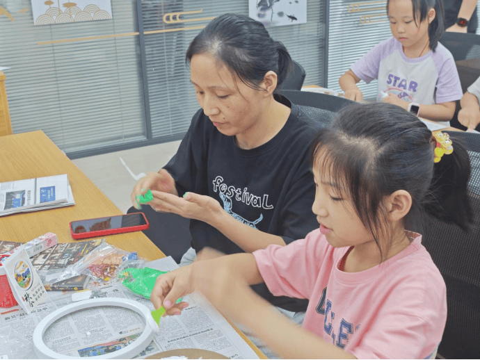 活动的高潮当属手工制作环节。社工提前准备了彩色卡纸、剪刀、胶水、丝带等材料,带领大家制作秋分主题手工作品。社工一边耐心讲解步骤,一边手把手指导有需要的居民。孩子们专注地裁剪、粘贴,家长们则在一旁帮忙递材料、提建议,亲子协作的画面格外温馨。不一会儿,一个个形态各异的“秋分丰收摆件”陆续完成,居民们举着自己的作品拍照留念,脸上满是成就感。