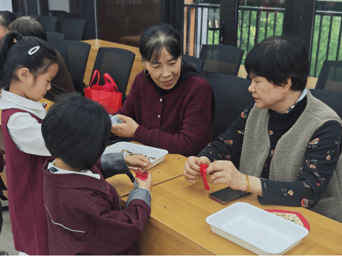 随后,大家一同参与了香包制作活动。社区工作人员为大家准备了香料、布料、丝线等制作材料,并详细讲解了香包的制作步骤和技巧。小朋友们在爷爷奶奶的指导下,认真地填充香料、整理边缘,老人们耐心地教导孩子们如何打结、如何装饰,手把手地传授技巧。孩子们学得有模有样,遇到困难时互相帮助,现场充满了温馨和谐的氛围。经过大家的共同努力,一个个造型精美、香气四溢的香包制作完成了。老人们拿着与小朋友们一起制作的香包,凑近鼻尖轻轻嗅闻,脸上满是喜悦之情。“能和这么多可爱的小朋友一起过节,还收到了他们送的祝福卡和亲手做的香包,感觉特别温暖,这个重阳节过得太有意义了。”参与活动的方阿姨说道。