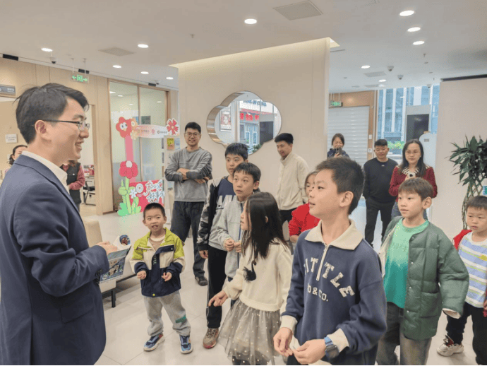 活动伊始,10组亲子家庭准时集结苏州银行网点,在工作人员的热情引导下开启了探索之旅。银行工作人员带领大家逐一参观了行内自助取款机、智能柜台、叫号机等核心设备,用通俗易懂的语言详细讲解了各类设备的操作流程与安全使用注意事项。“大家知道自助取款机怎么查询余额吗?”“智能柜台能办理哪些业务呀?”讲解过程中,工作人员频频抛出趣味问题,孩子们积极举手、踊跃抢答,每一次精彩回应都能收获一枚象征荣誉的积分币,现场氛围热烈而欢乐。