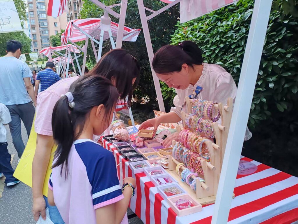自主摊位区同样人气高涨。居民自主摊位整齐排列,从闲置玩具、手作饰品到家用小物件,都被擦拭一新摆放出来。摊主们热情介绍商品,买家认真挑选,讨价还价声中透着邻里间的熟络。一位阿姨将亲手做奶茶喝蛋挞摆在摊位上,很快就被邻居们 “抢” 购一空。