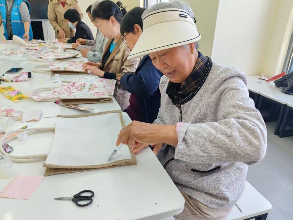 5 月 12 日,新乐融城社区活动室里笑声不断,一场充满温情的老年人手工包包制作活动热闹开展,旨在丰富社区老年人的精神文化生活,增强他们的动手能力和社交互动。