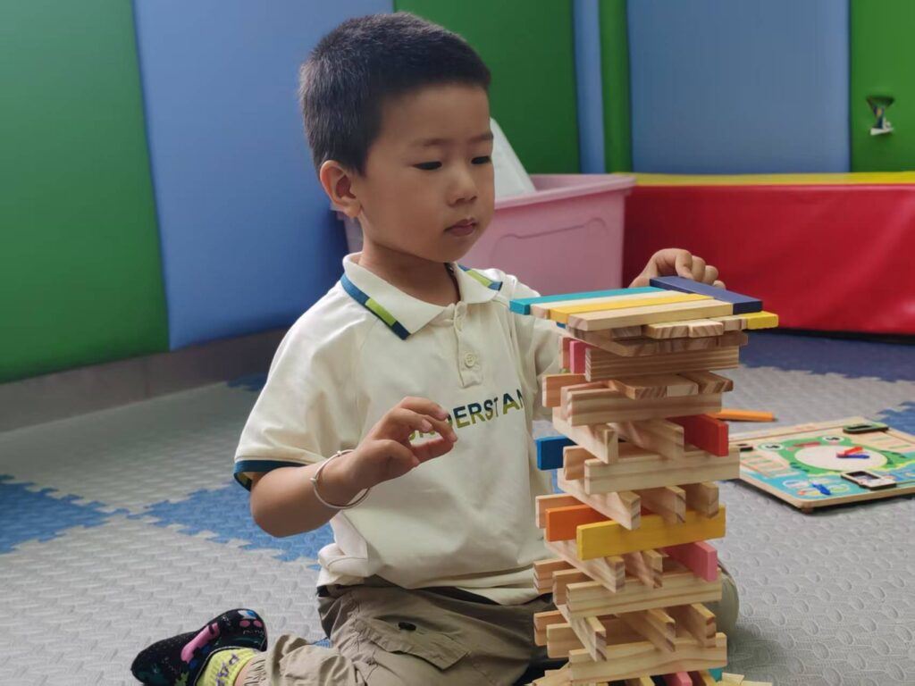 孩子们小手拿着积木,时而堆叠出高耸的 “塔楼”,时而拼出灵动的 “小动物”,家长们则耐心陪伴,或帮忙稳固结构,或与孩子讨论造型。有家庭合作搭建出未来社区模型,还有的拼出会转动的机械装置。