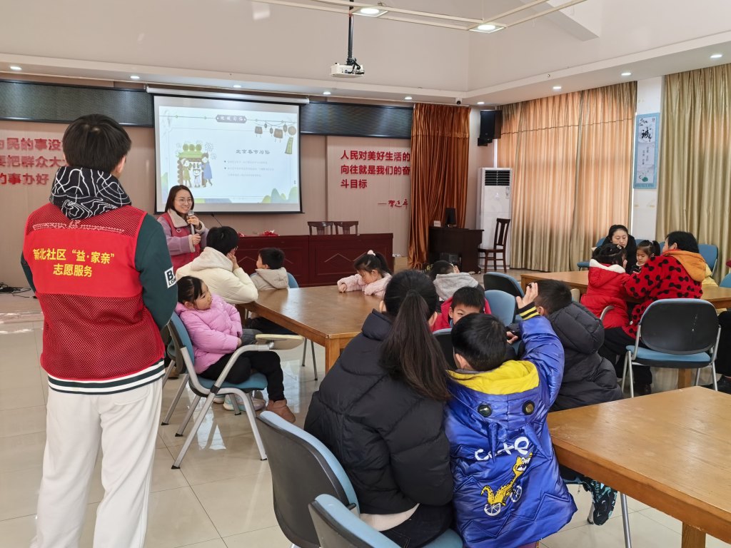 活动中,社工以春节民俗为核心,从年前、节间习俗,春节文化及地域习俗等方面展开趣味讲解。扫尘、祭灶等年前备年习俗,开门放炮、正月初一拜岁等节间传统,以及朗朗上口的春节歌谣与趣味传说,让孩子们听得津津有味。在地域习俗分享环节,大家踊跃交流北京、东北等地的春节特色,现场互动氛围热烈,孩子们在轻松的交流中加深了对春节民俗文化的理解与认知。