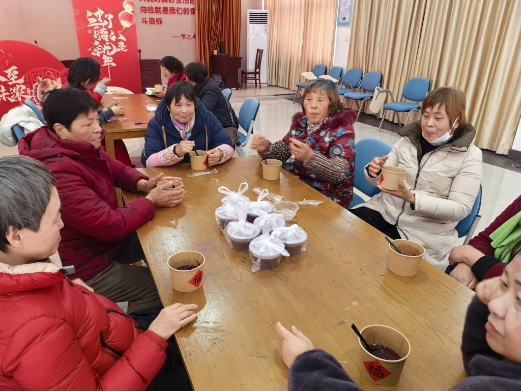 活动前,志愿者们提前到场精心布置,印有“浓情腊八”的背景牌装点舞台中央,两大电饭锅的腊八粥在分工协作下熬煮完成,香甜气息弥漫社区。活动中,志愿者热情引导老年居民入座,逐一盛上热气腾腾的腊八粥。老人们围坐闲话家常,现场其乐融融,不少老人感慨社区始终记挂老年群体,让大家感受到实实在在的关怀。活动后,社区社工与志愿者还走访慰问五保户老人,将腊八粥与新春祝福送至家中,祝愿他们健康长寿。